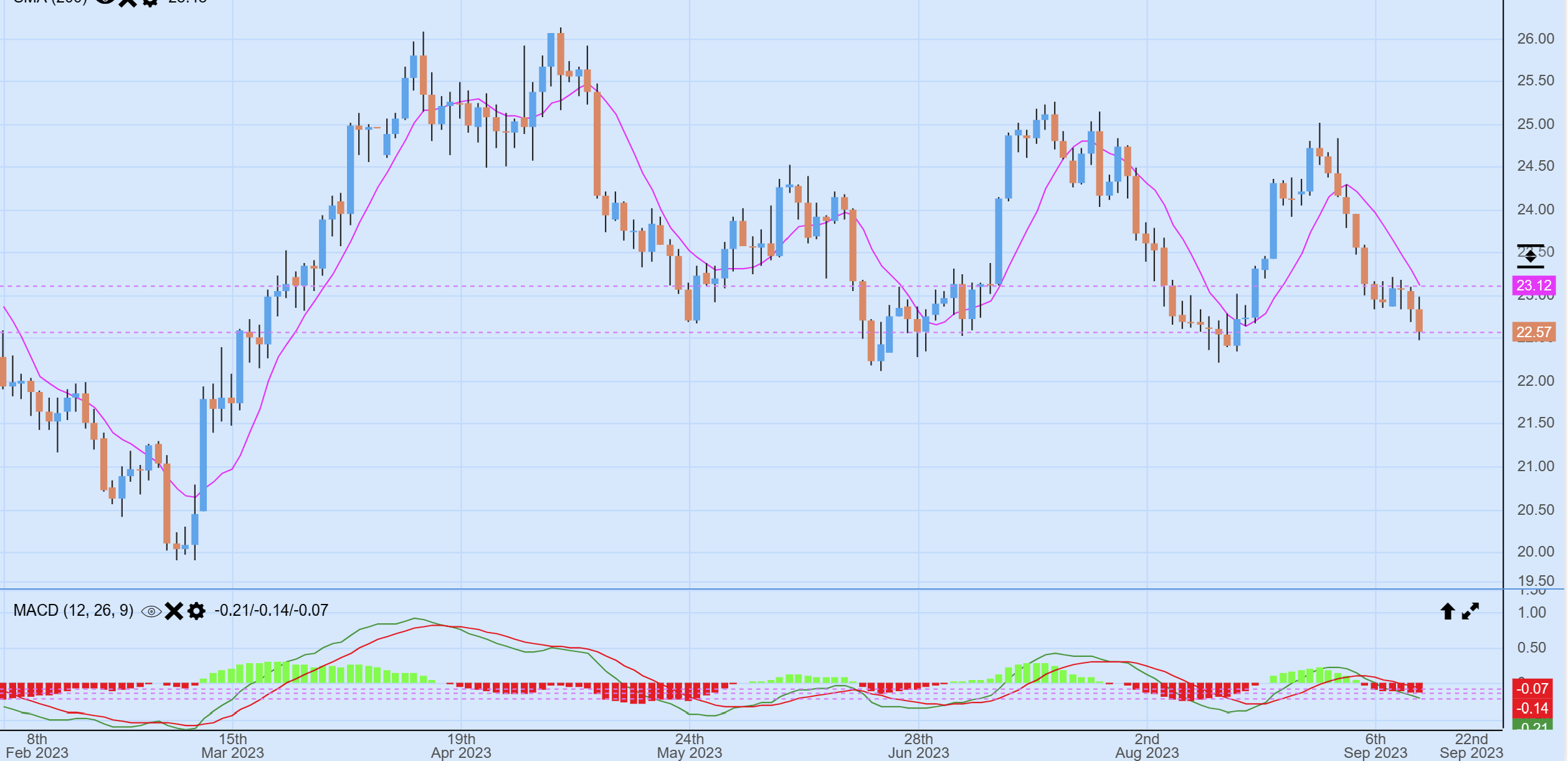 Notice that Silver certainly had a very strong rally out of those August lows and it really looked Bullish in early August. Silver Miners did not follow with the same strength and vigor though, they popped and chopped. Silver has now dipped back down here and looks to simply be in a large sideways consolidation of its own. We’d need to see the Miners start to take over the lead the way higher soon or this may just remain one large sideways consolidation.