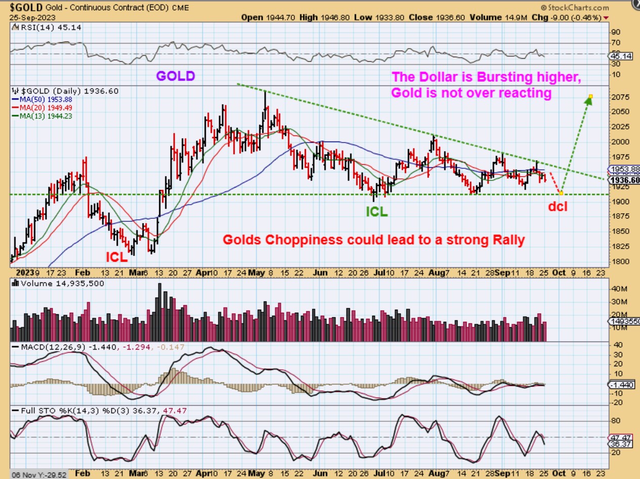 GOLD -If Gold remains above the lower trend line, then it is likely that Gold put in an ICL in late June and this is just a choppy bottom. I think that this is less likely, so we should expect Gold to break to a new low and then reverse higher. Please read the chart.