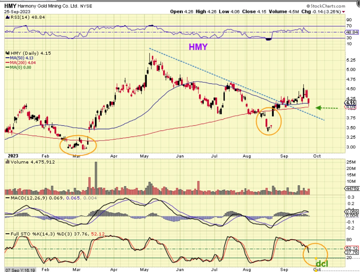 HMY has already broken above its 4 month downtrend, recovered the 50& 200sma, and remained bullish during this sell off. It can drop down and test that downtrend line and reach oversold and still be fine. It also may just hold up above this 200sma area.