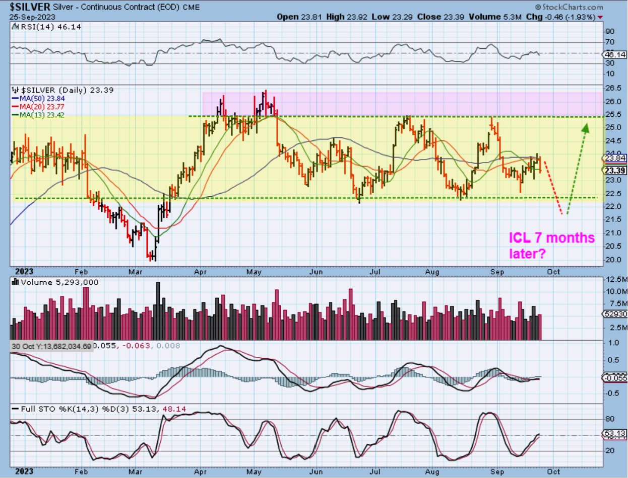 GOLD dipped down a little on what is day 26 of the daily cycle. These daily cycles often last 32 days (roughly), and that would fall on next Tuesday, so this may just be a choppy week. A bullish triangle or wedge seems to be forming here. If Gold breaks the lows of June, we would be seeing an ICL form 7 months after the March ICL, and that is very normal. If…