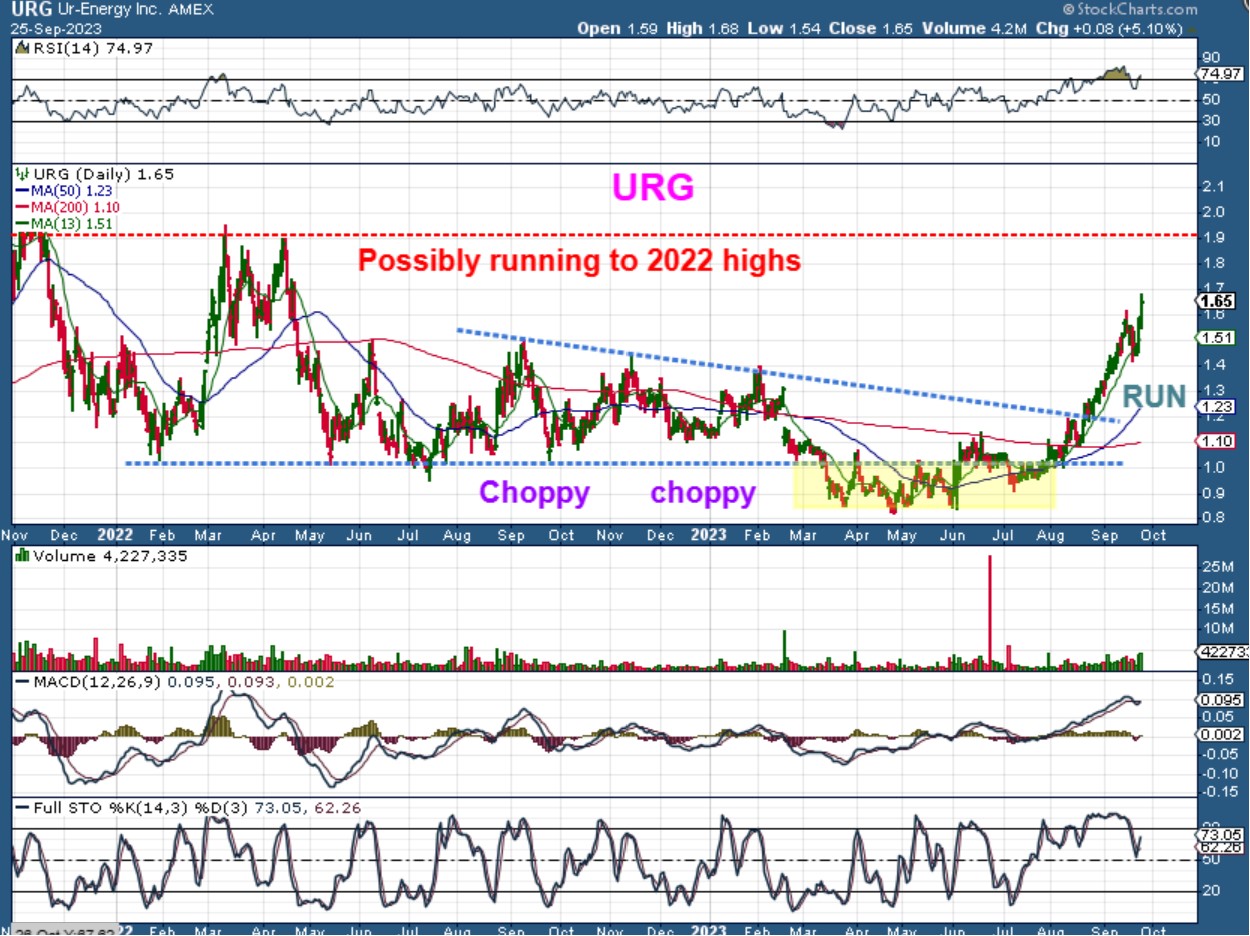 URG seems to be running to prior 2022 highs. After an EXTREMELY choppy period, they are now putting in more of a smooth rally.