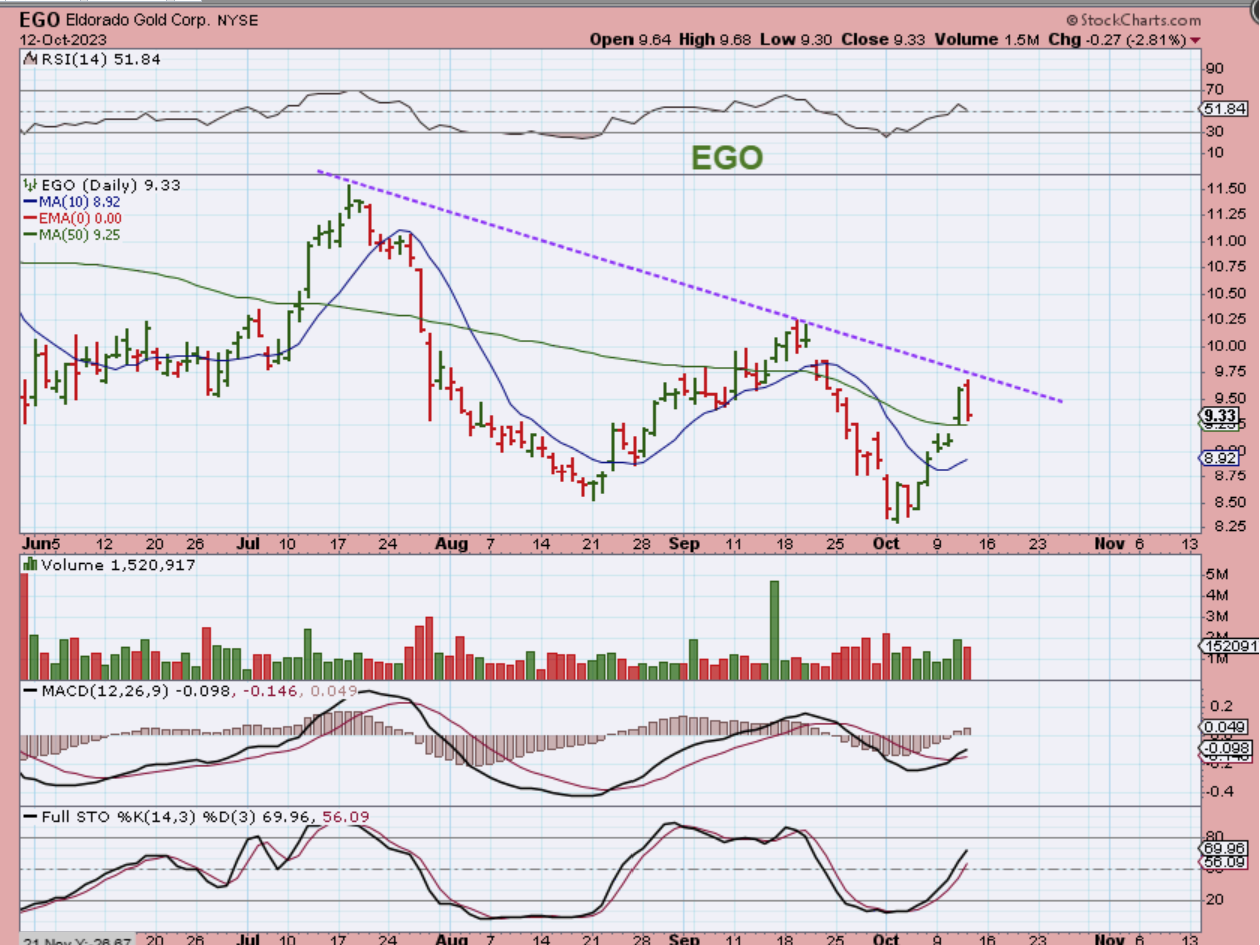 EGO was down almost 3%, but it remained above the 50sma if you had raised your stop there.