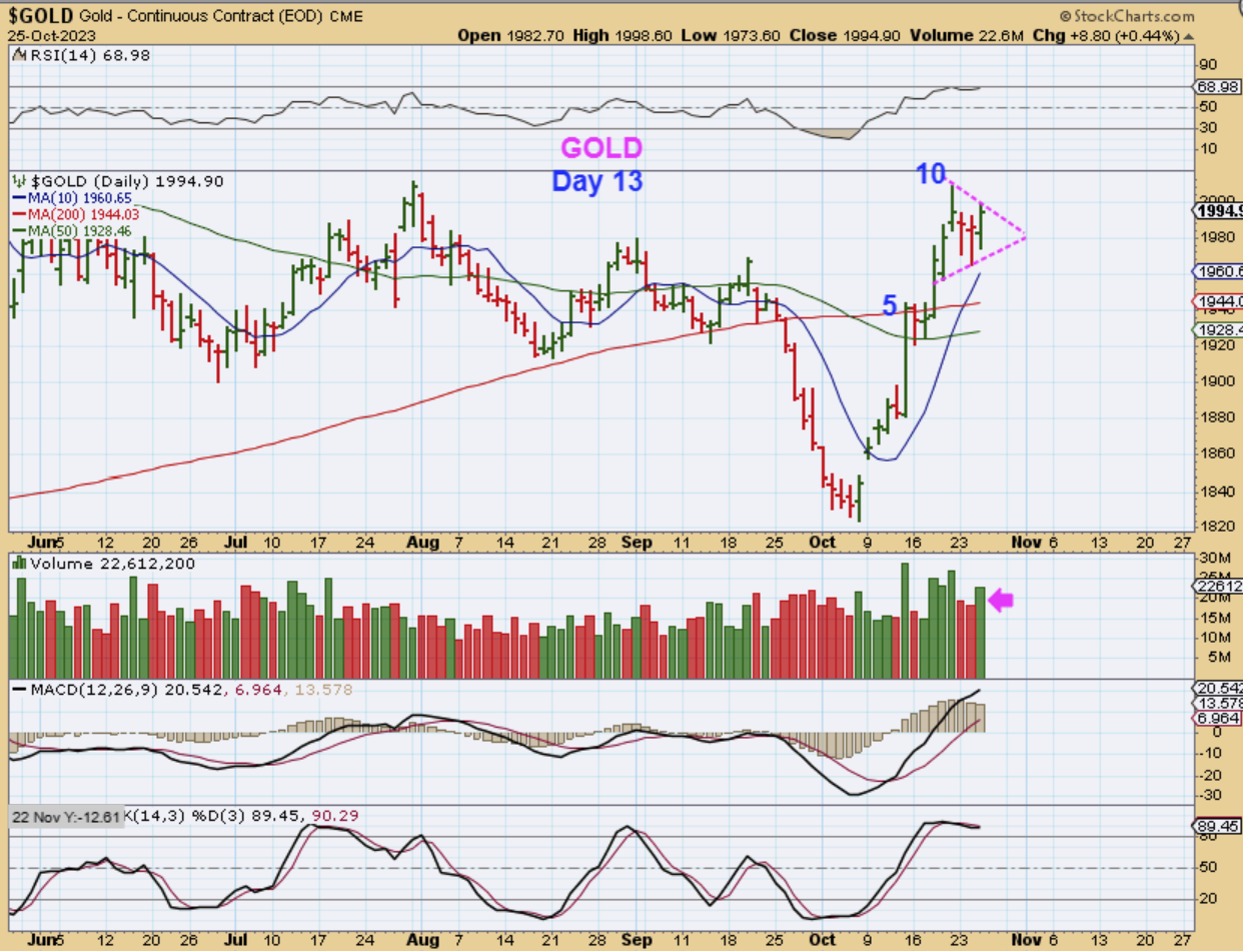 GOLD could be forming a Bullish pennant. Even if this broke down though, we basically still have a very bullish run out of the ICL and Gold is on day 13, consolidating those gains.