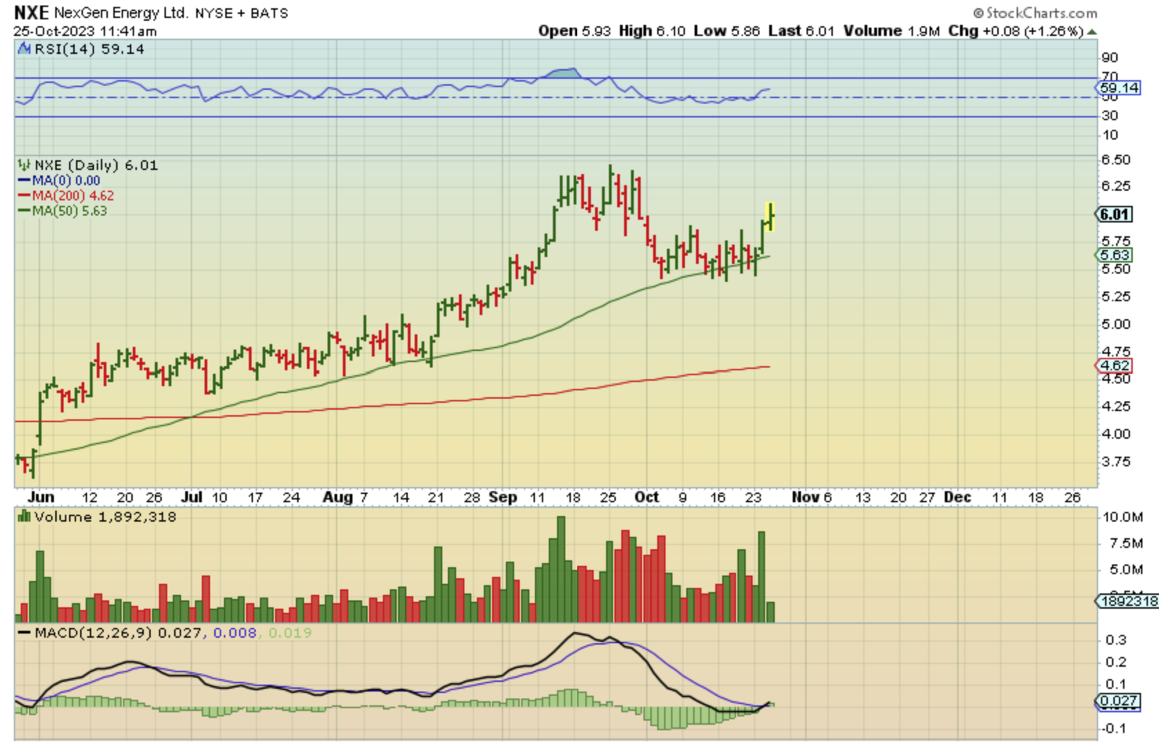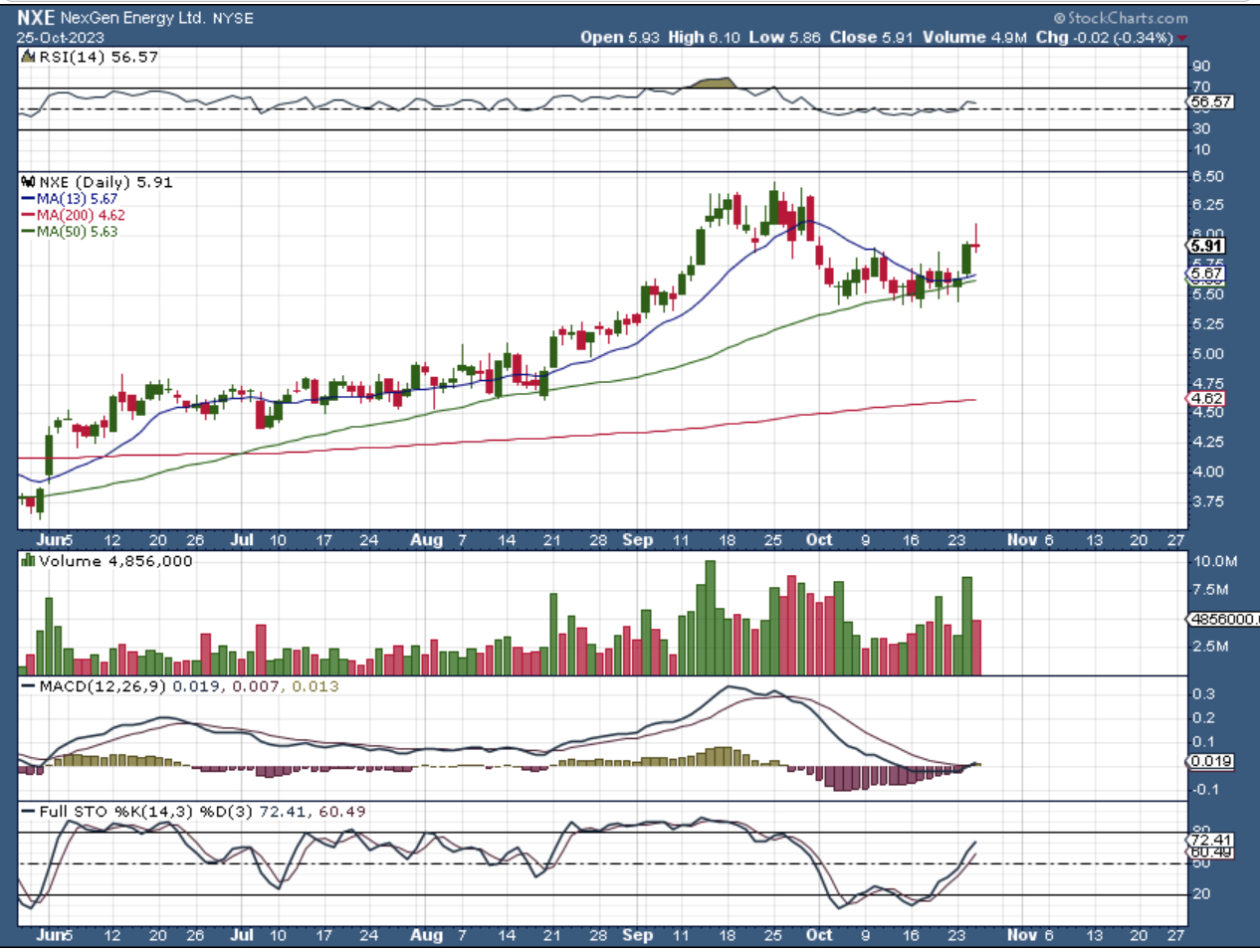 I decided to add one to my portfolio and I bought a starter of NXE at $6 as it popped and dipped here. It actually dipped even lower, so let’s see how it closed…