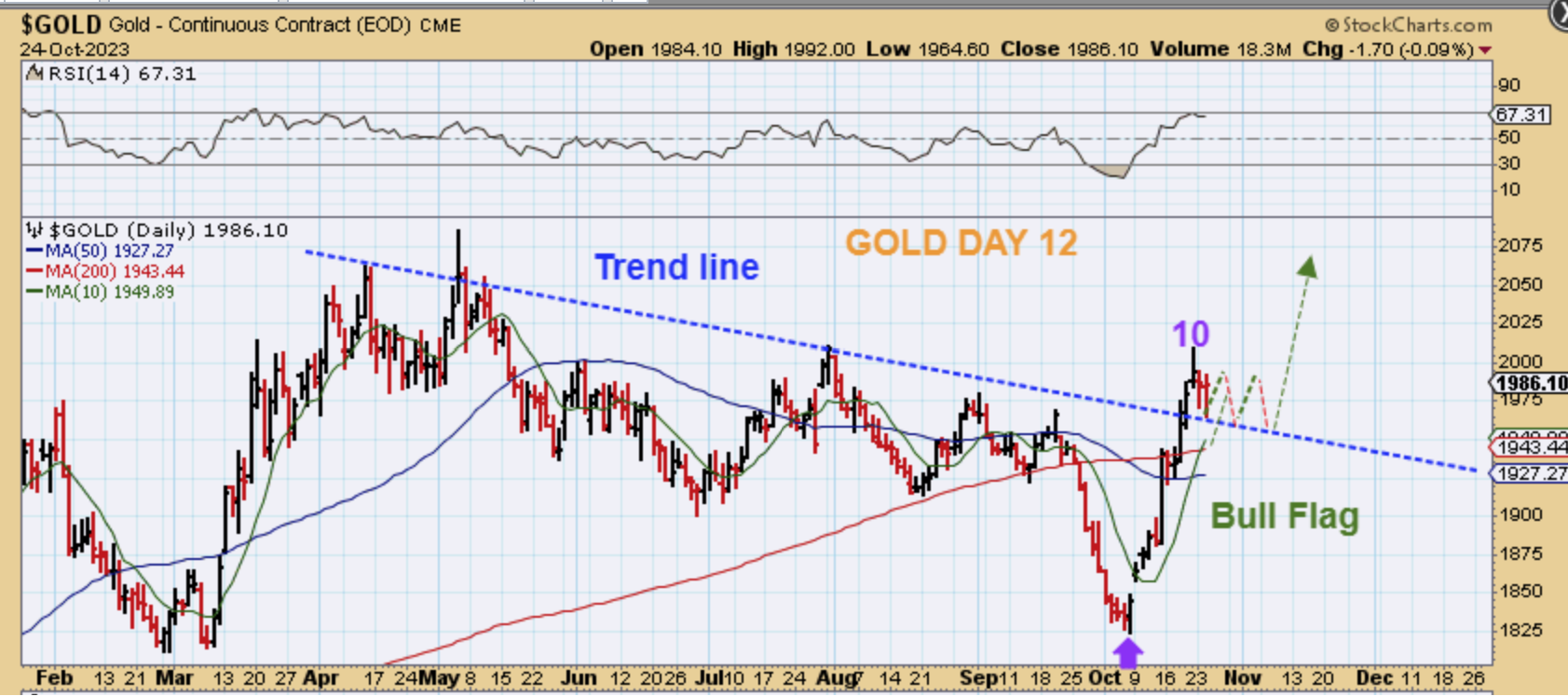 GOLD – A bull flag can also be a boring extended churning sideways of price, so I have drawn that here too.