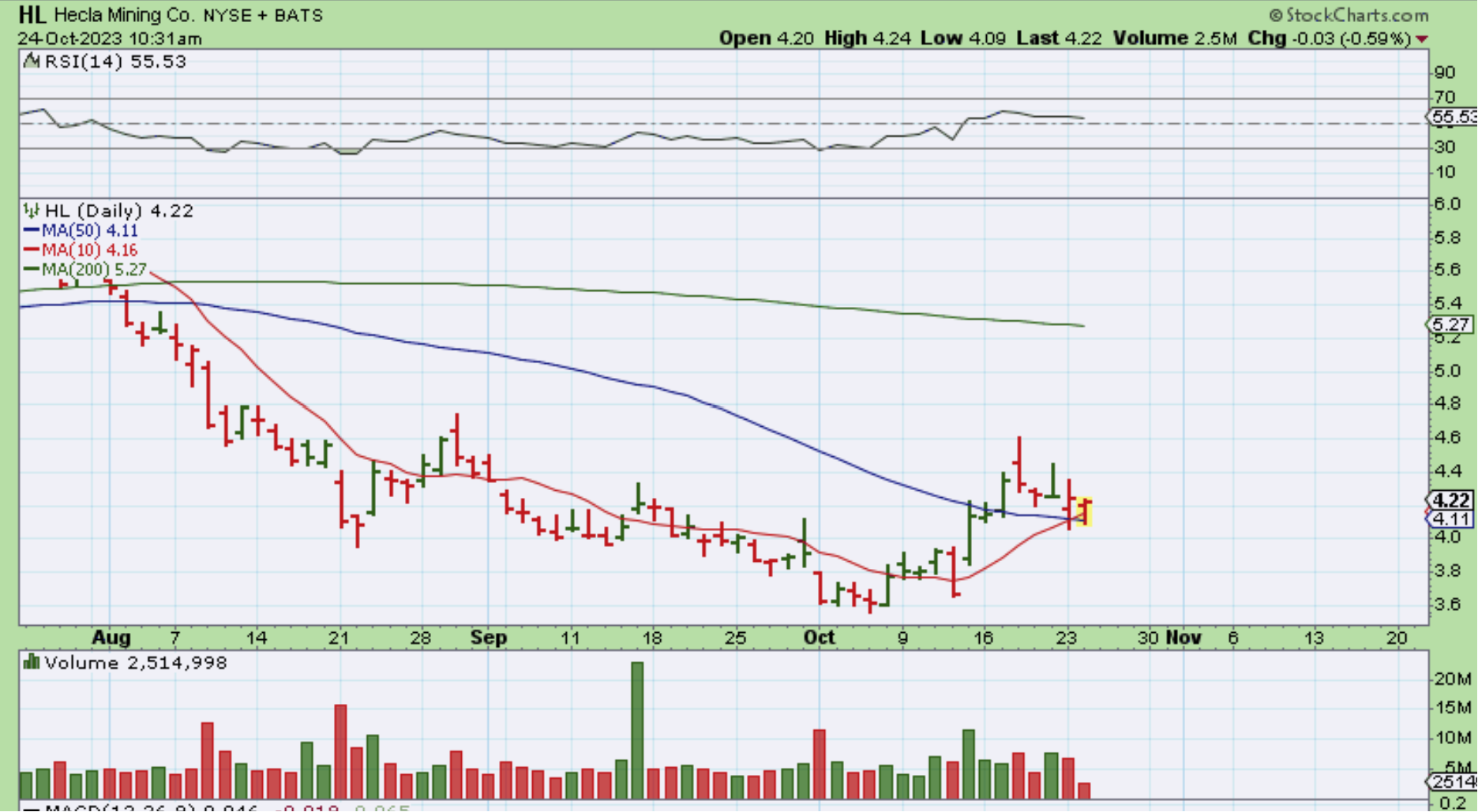 HL and a few other silver Miners seem to be holding up and riding along support so far.