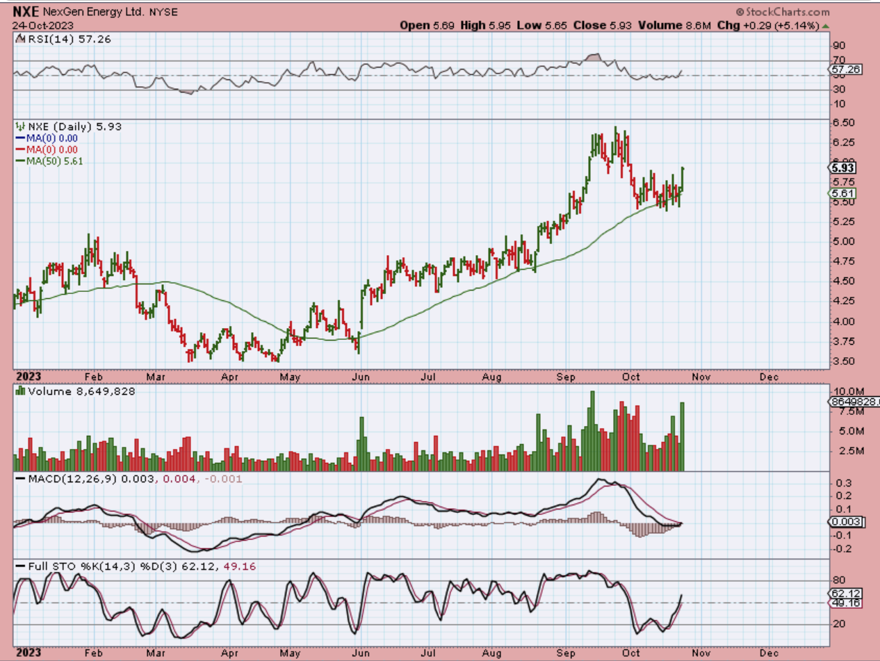 – As for the Precious metals? We expected this to be a down week. You can go back and read the weekend report and you will see that. Now we just have to try to patiently watch how things unfold, and so far it is more of a sideways chop lower, where the morning sell off ends up getting bought back up, but the selling certainly may not be done yet. These moves can last for a couple of days or even several days. When I look at a variety of different miners, they are acting differently during this consolidation period, making it difficult for those that want to add or buy them. Will they drop further? They could. Might they just start another run higher in a day or 2? They could, so we just have to be ready for anything. I said from the beginning that the basic strategy of a move out of an ICL is to buy a basket of Miners and just hold on through the wiggles. In a month or 2, Prices should be a lot higher than your entry. Anyone that bought HMY, GFI, AU, etc is still holding good profits (I owned those), anyone that bought Silver Miners ( I bought a couple of those too) are a bit disappointed due to the lackluster move higher, but that could change by the time this rally unfolds. It just takes time. I want to discuss Uranium stocks below, enjoy your Wednesday trading.