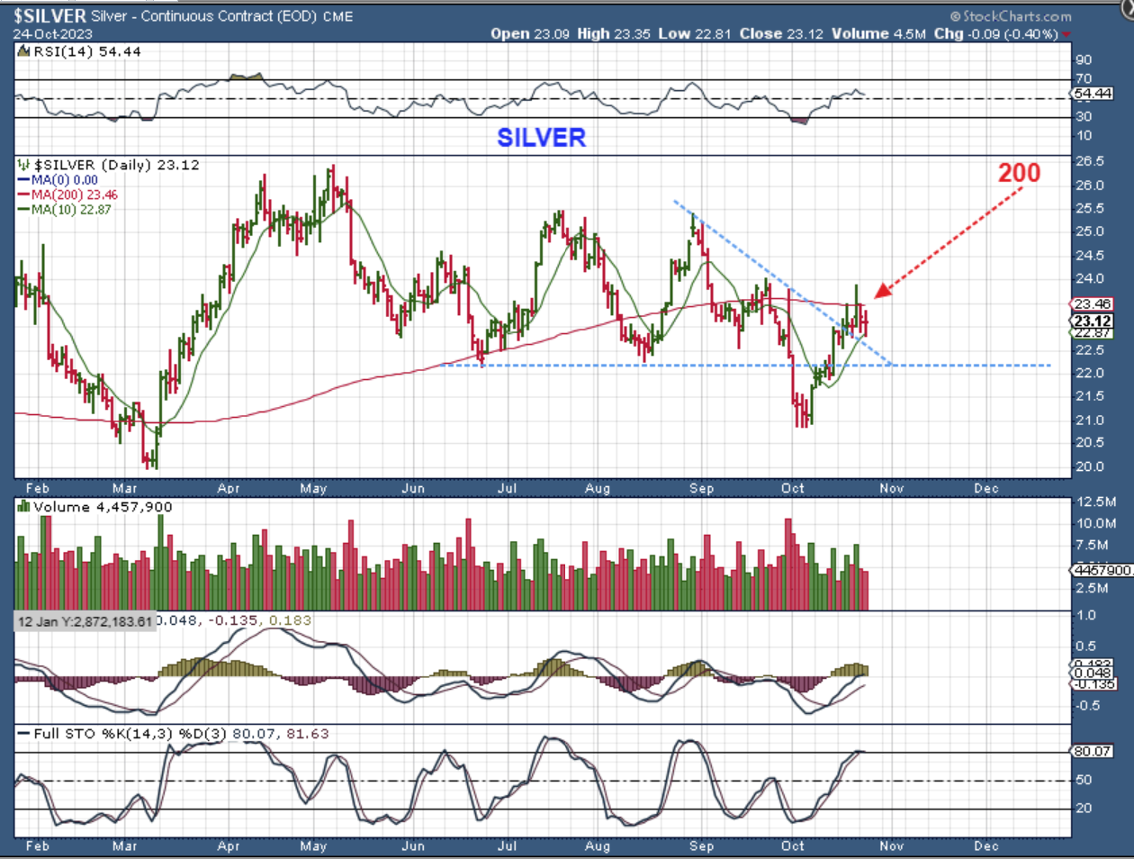 SILVER is stalling under the 200sma, likely building energy for a break out.