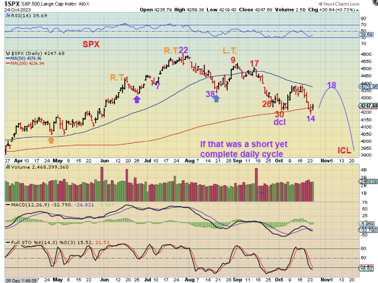 I was saying that a day 30 dcl seems too early, so we could bounce and break to a new low that would be the ICL or DCL. The problem is that the bounce was rather strong and that is a little odd for the last days of an ICL drop. That means I have 2 ways of looking at this.