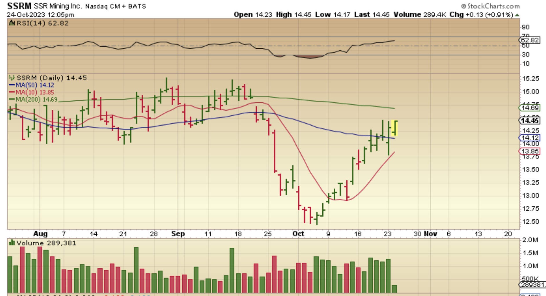 SSRM has actually closed green all week and may be heading up towards the 200 sma.