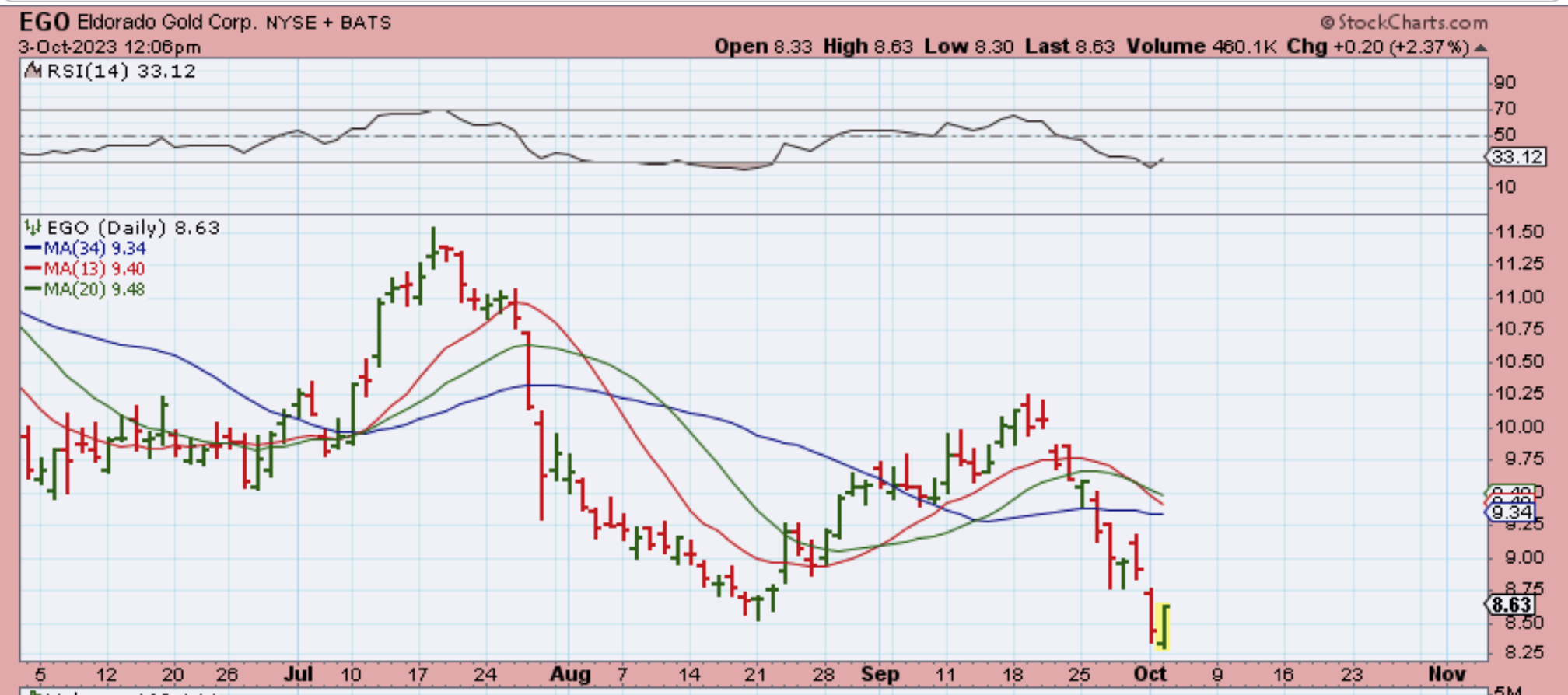 EGO was looking like it might put in a ‘Bullish Engulfing candle’, so I captured this midday. It did close up slightly higher than this, but did not close above Mondays lows for that bullish engulfing to complete. It still looks good.