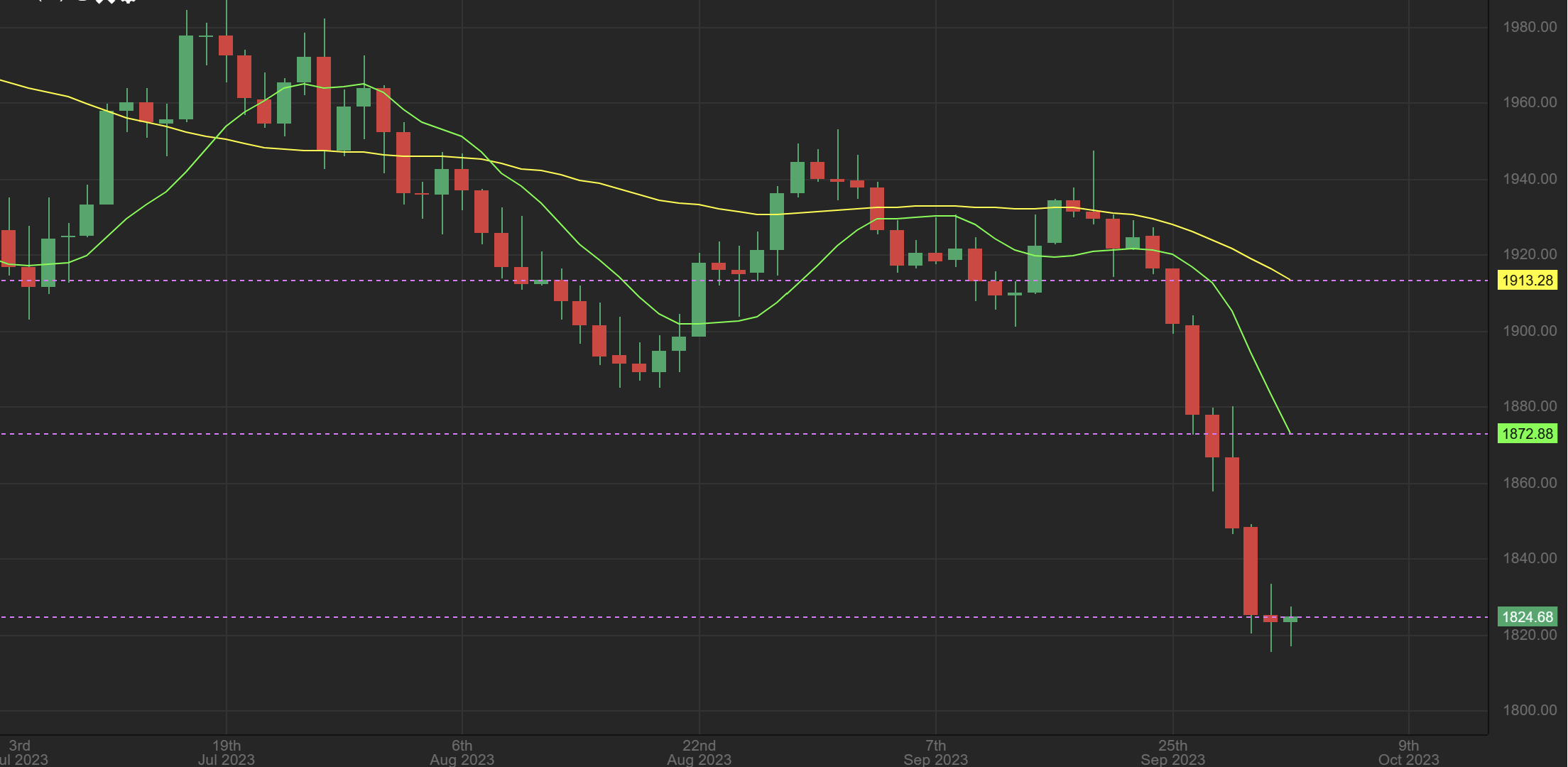 GOLD LIVE 7 a.m. ET – trying to make a swing low (So far).