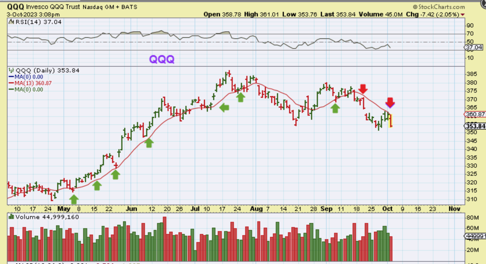 I’ve been pointing out the 13sma as a resistance point for The QQQ. On Tuesday we saw price reverse there again.