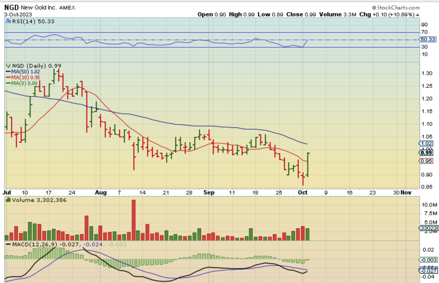 NGD then closed up about 11%. That relentless selling over the past few weeks can be quickly erased when Miners move like this. This is suddenly a 6 day high.