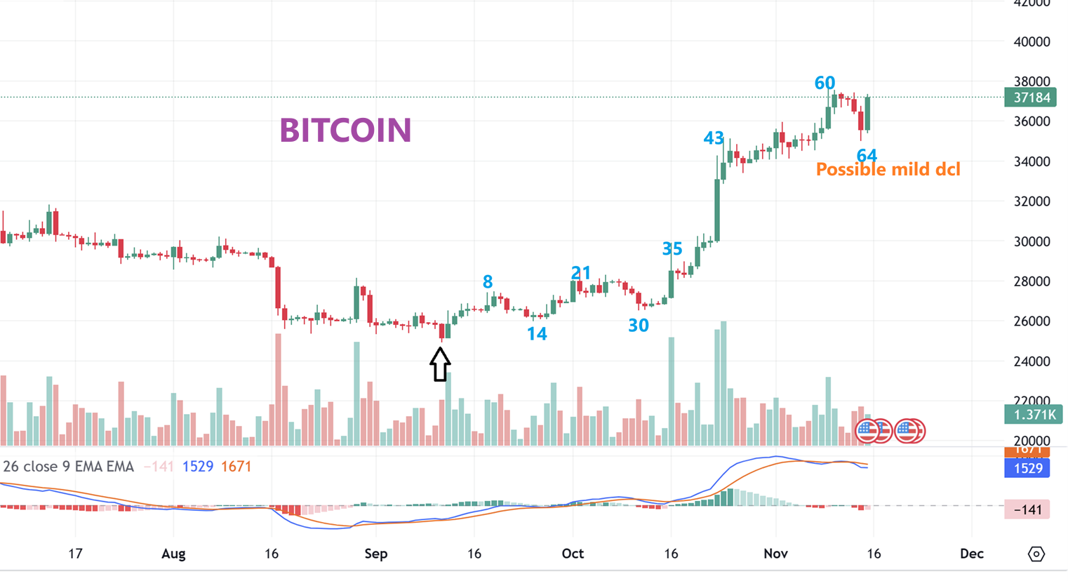 BITCOIN dipped down on day 64, and day 60 is when a dcl is due, so I am thinking that this was a strong move out of an early ICL (the 60 day run, with a day 30 dip), and that may be all we see for a dcl. Look at the 4 day dip into day 30 and it looks very similar to the 4 day dip into day 64 dip.   It is hard to believe that Bitcoin is THAT strong and crtypto stocks are not following, however, when I look at those stocks now–they have become bullish bases. Will they run on the next push higher?…