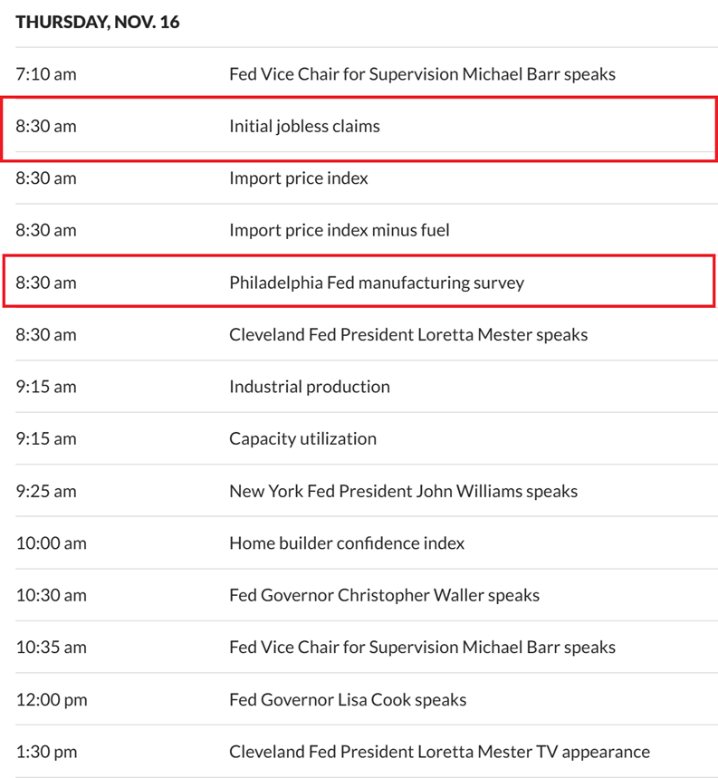 Thursday November 16th – Jobless Claims