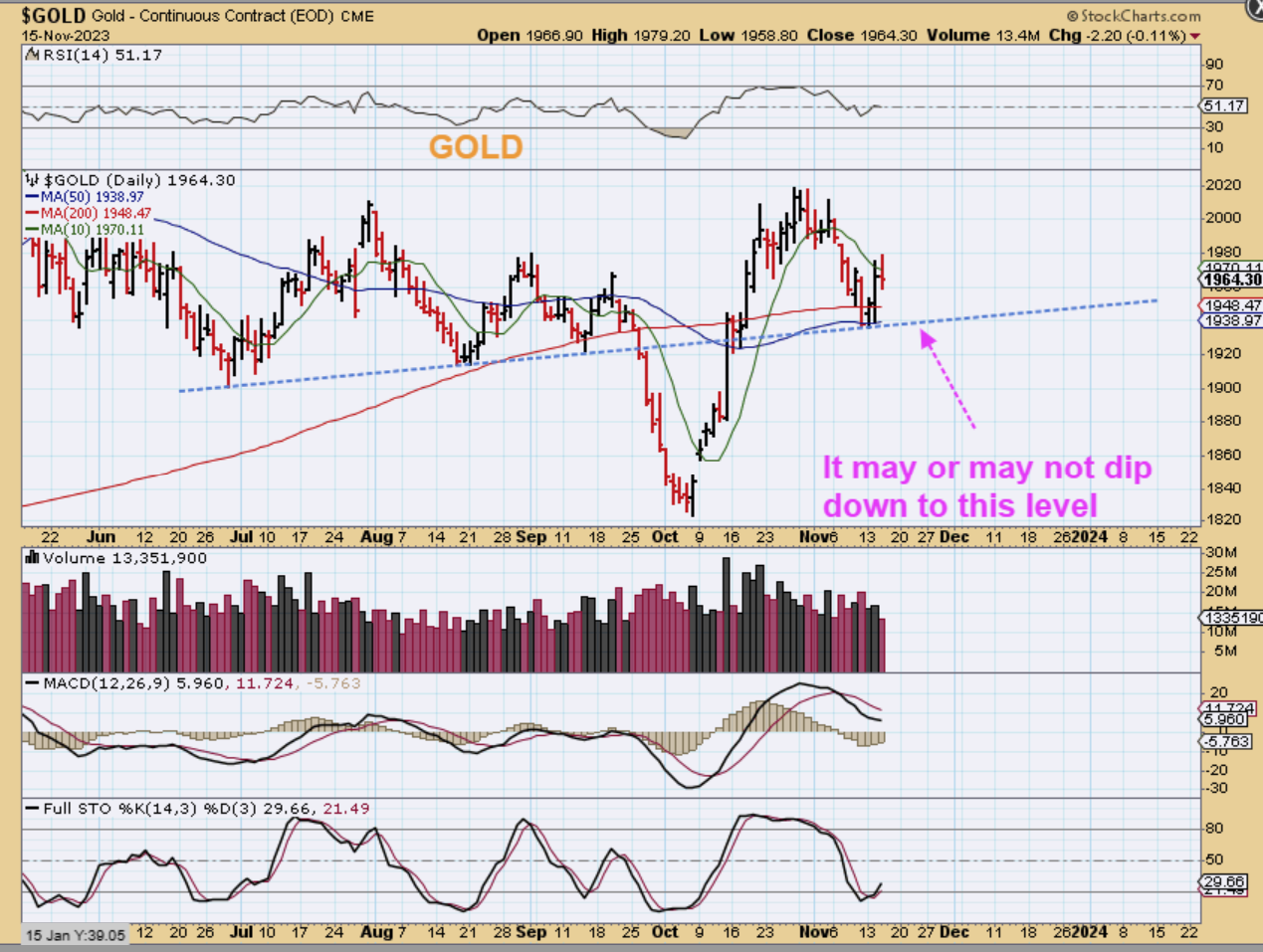 AS A REMINDER:  Yesterday I discussed a possible early dcl followed by a dip with Gold. Gold found support at the 50 & 200sma, so a dcl is very possible. I said:
