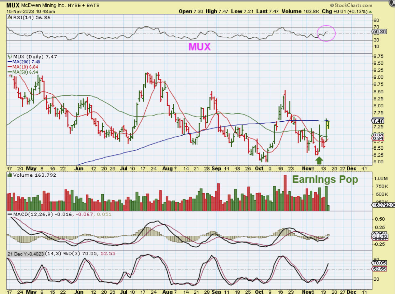 MUX actually Popped on earnings, paused, and is trying to continue higher. The chart is a bullish base and so MUX is a buy for those reasons.