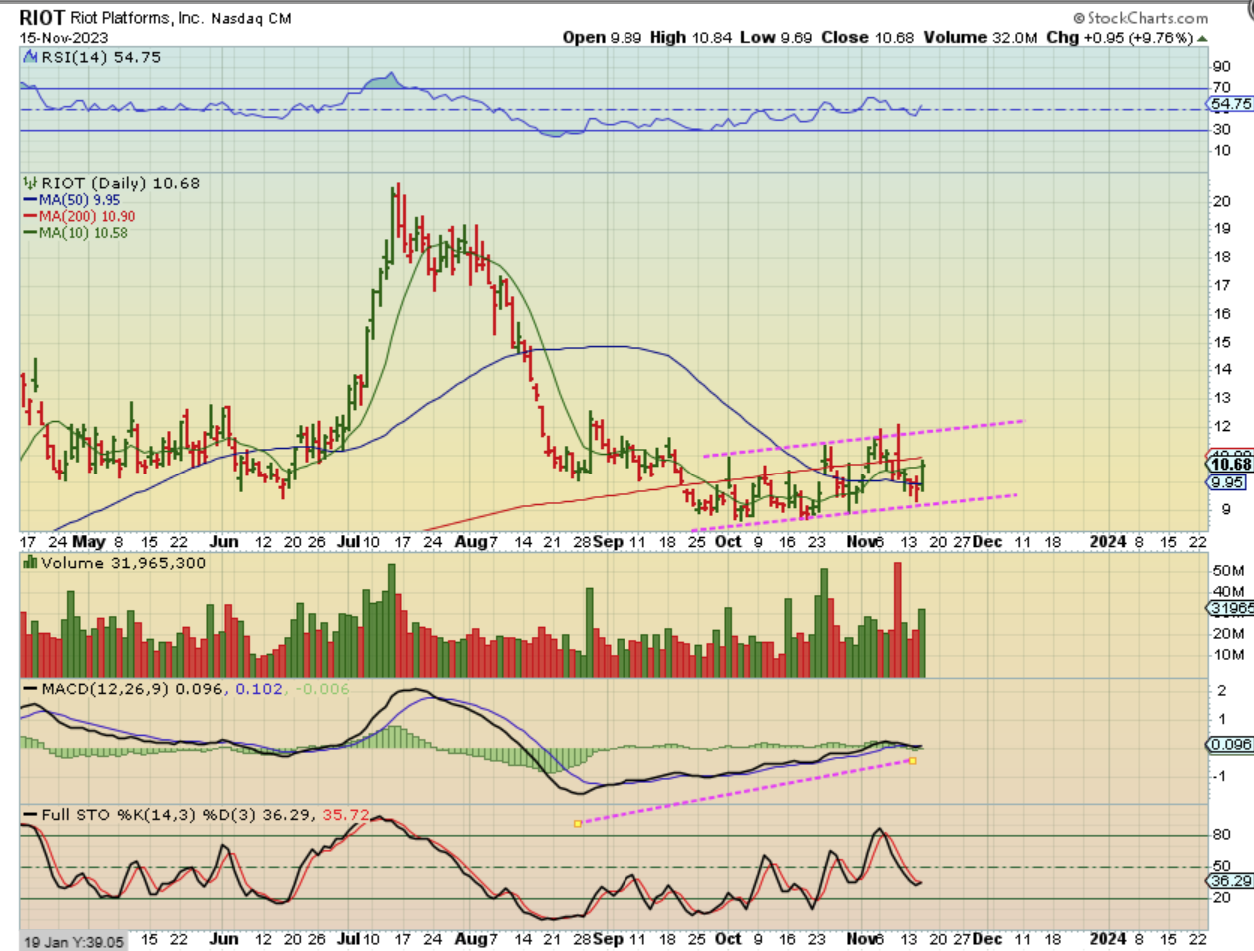 RIOT is also a series of higher lows and also challenging the 200sma.