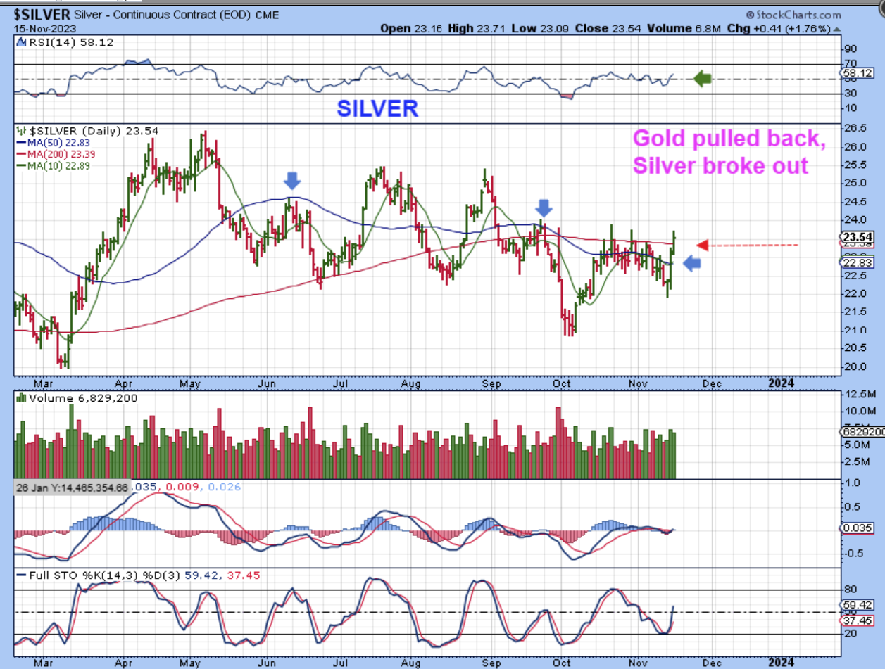 SILVER did NOT dip. This is nice to see, since it now looks like Silver wants to take the lead higher. Silver stocks lagged during the whle move out of the ICL for Gold in early October. They look bullishly aligned now and may play catch up. Silver has now also closed above the 50sma and now the 200sma.