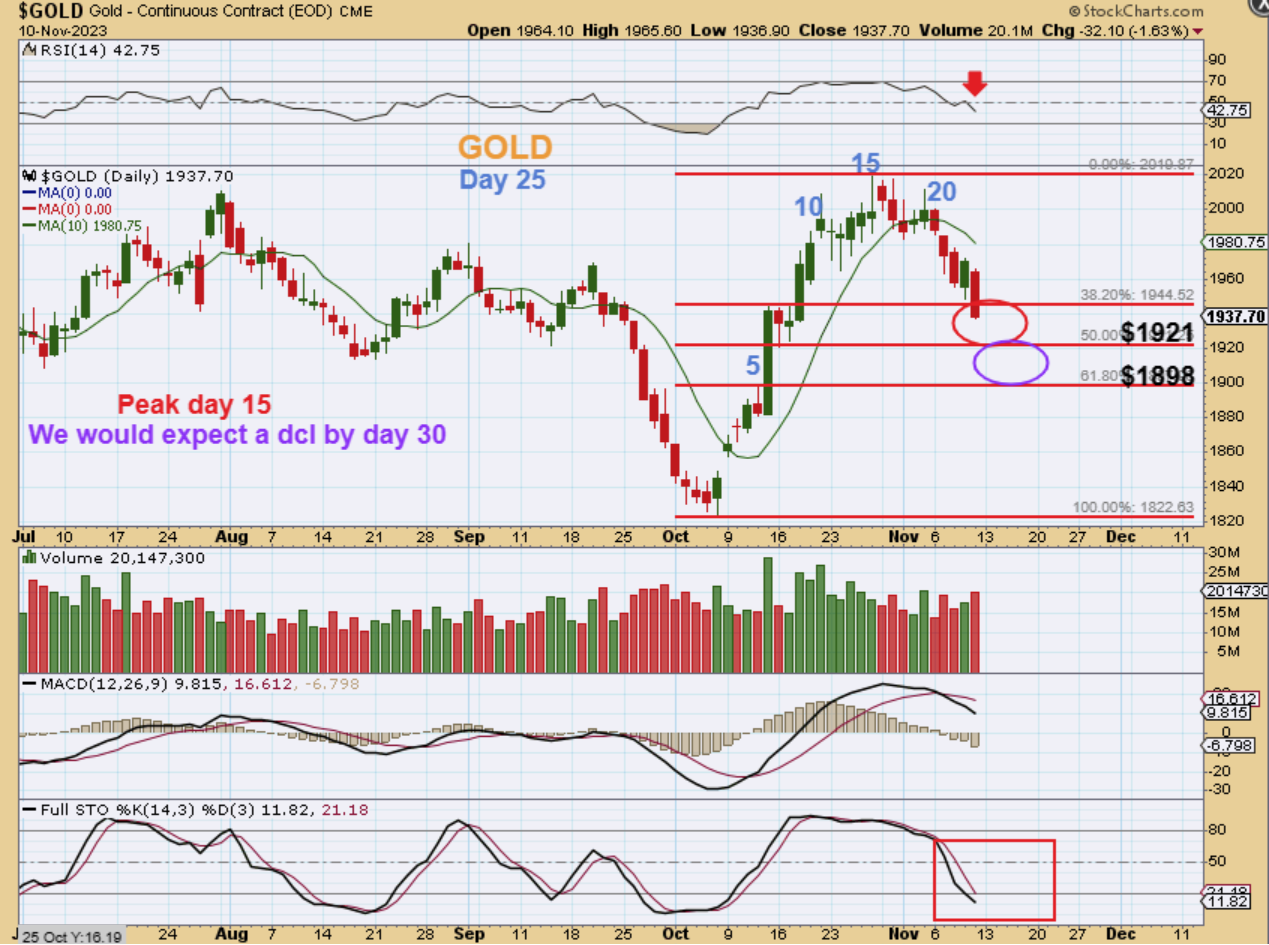 So we now have GOLD with a drop and a solid reversal in place on Monday, day 26. This is a little bit early for a dcl lately, but we have actually seen day 28 dcls in recent bull runs, so this very well could be a R.T. Daily cycle with a dcl in place. Gold has reached oversold, so let’s see what those CPI Numbers do for Gold at 8:30 am Eastern Time. THIS MAY BE A REVERSAL LOW AND THE END OF THE SELL OFF.
