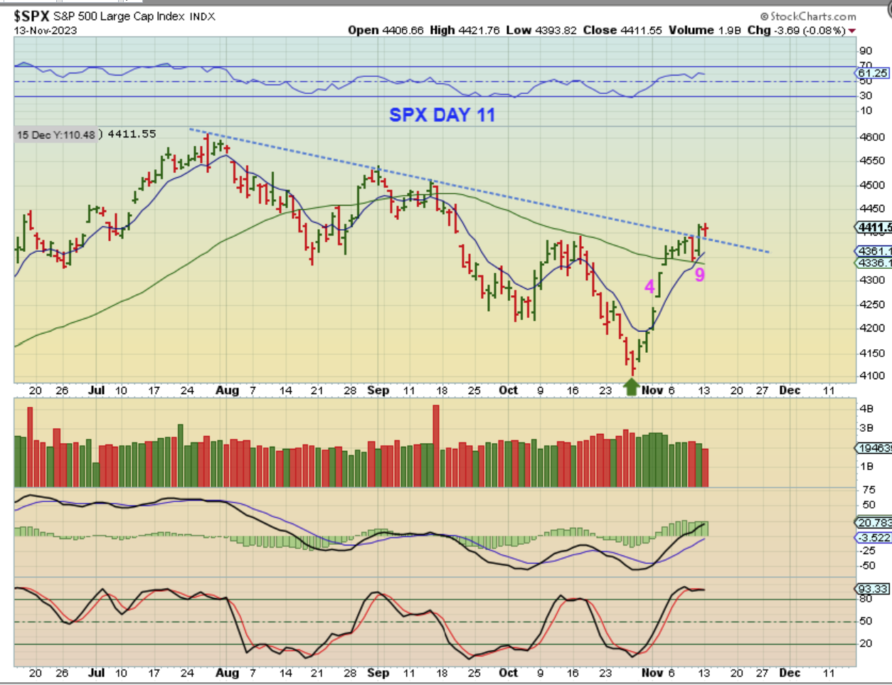 The SPX held up above that trendline break after a brief dip lower.