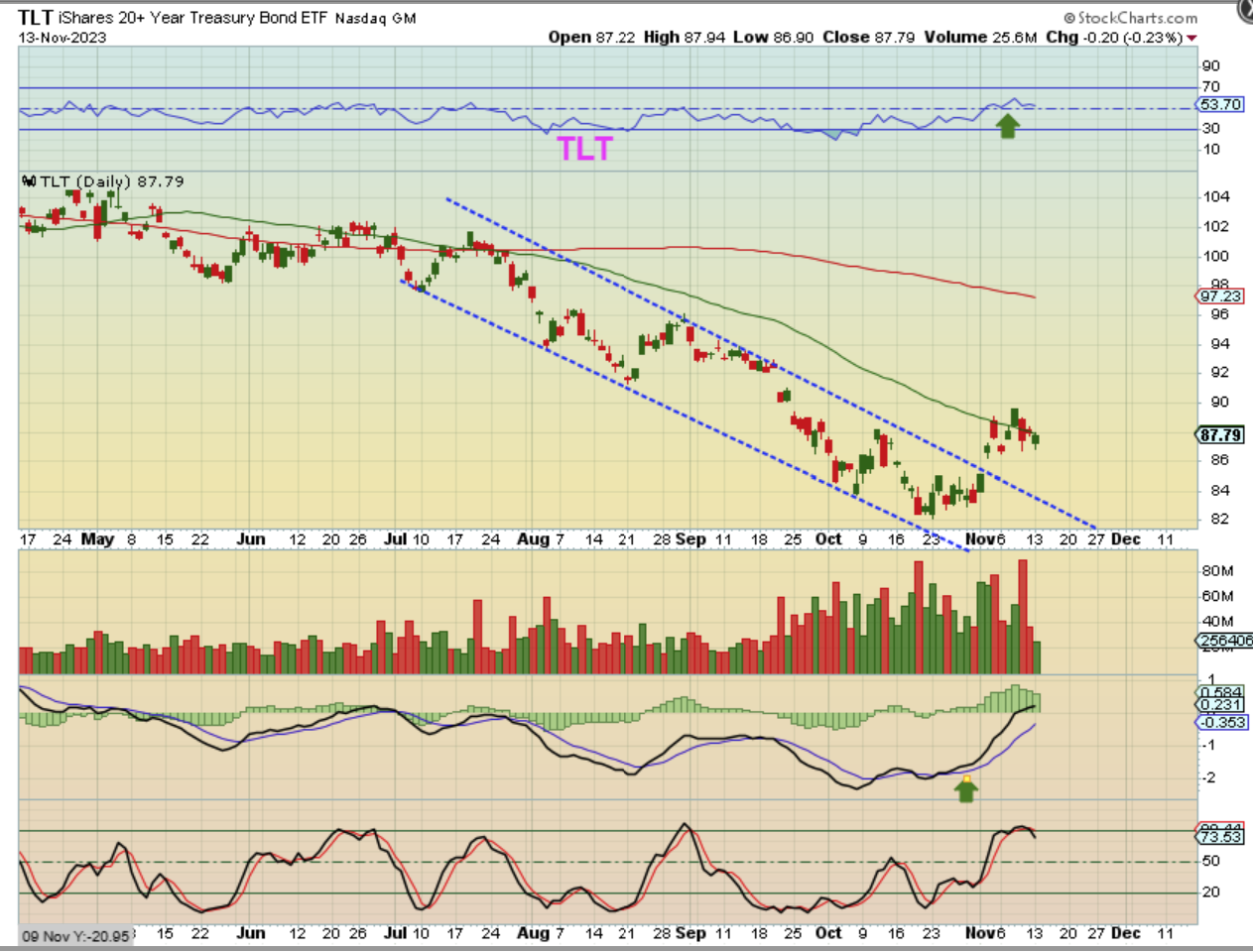 The TLT has chopped sideways since bullishly breaking from the down trending channel.