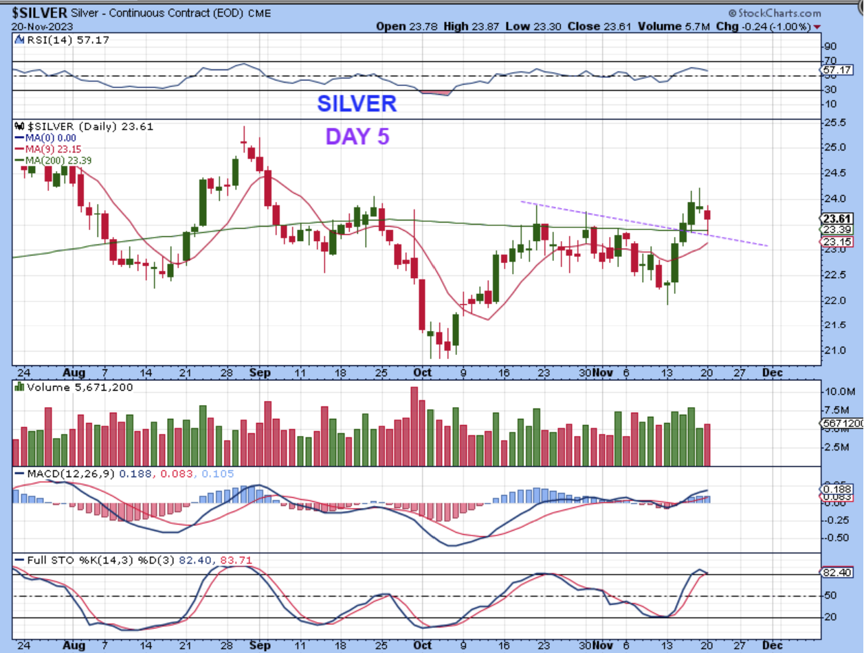 SILVER on day 5 at the close.