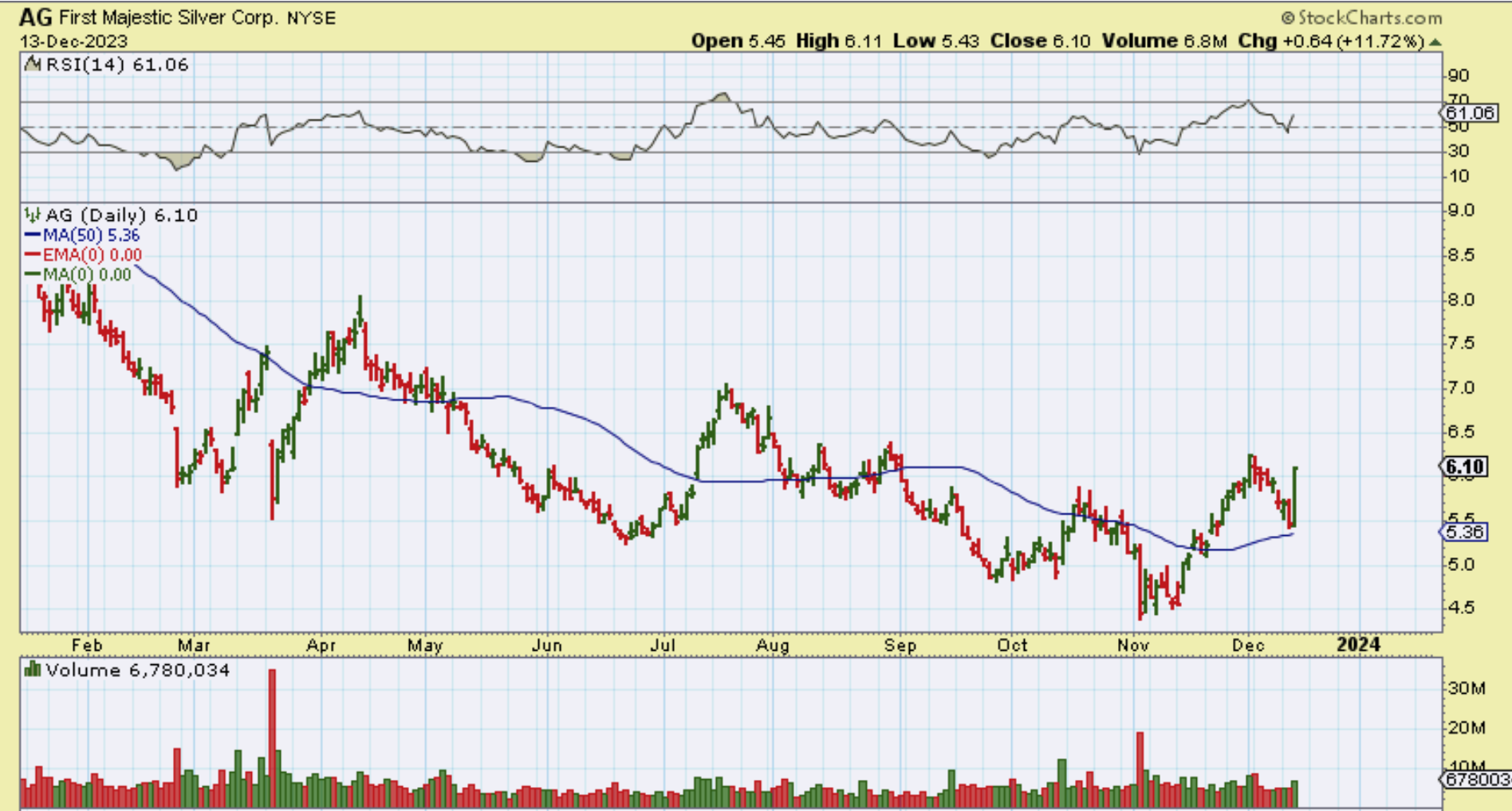 AG closed up almost 12%, so even if you bought it up 6%, you still tacked on another 6%. Ag bottomed in November and now has a higher low, it remains a buy and hold now.