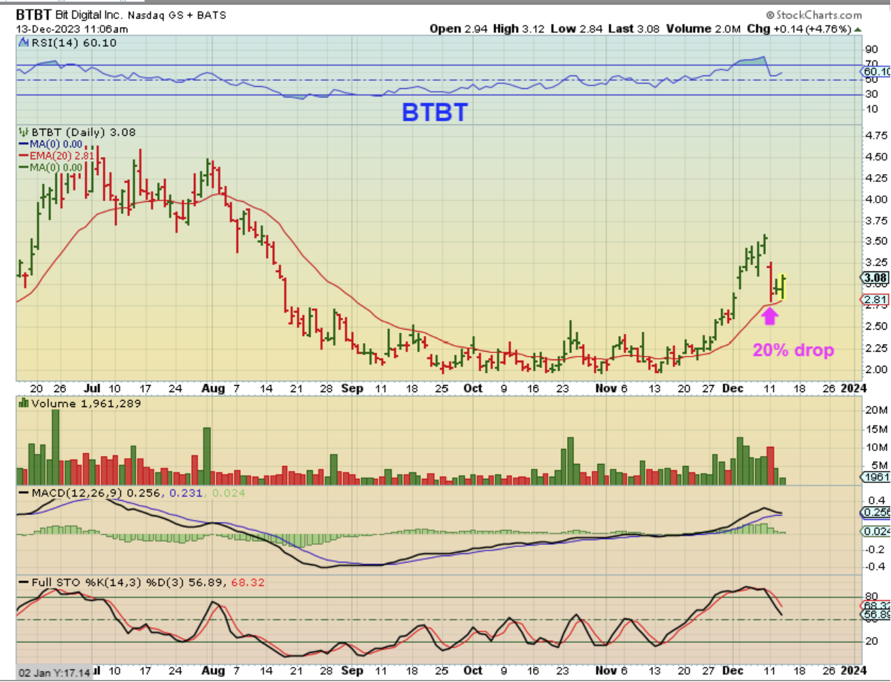 BTBT crashed 2 days ago, but with this reversal it looks ready to try to run again. a drop to the 20 ema seems common in this sector.