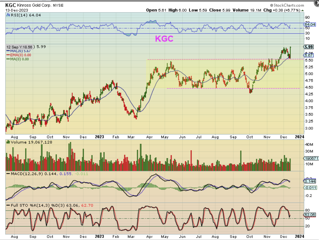 KGC has been one of the stronger ones and I have had it in most of the reports along with HMY, EGO, NGD, etc as strong leaders after earnings. It is already back at the highs, so KGC has been a real winner and will likely continue to perform well. These continue to be fine as BUY & HOLD.