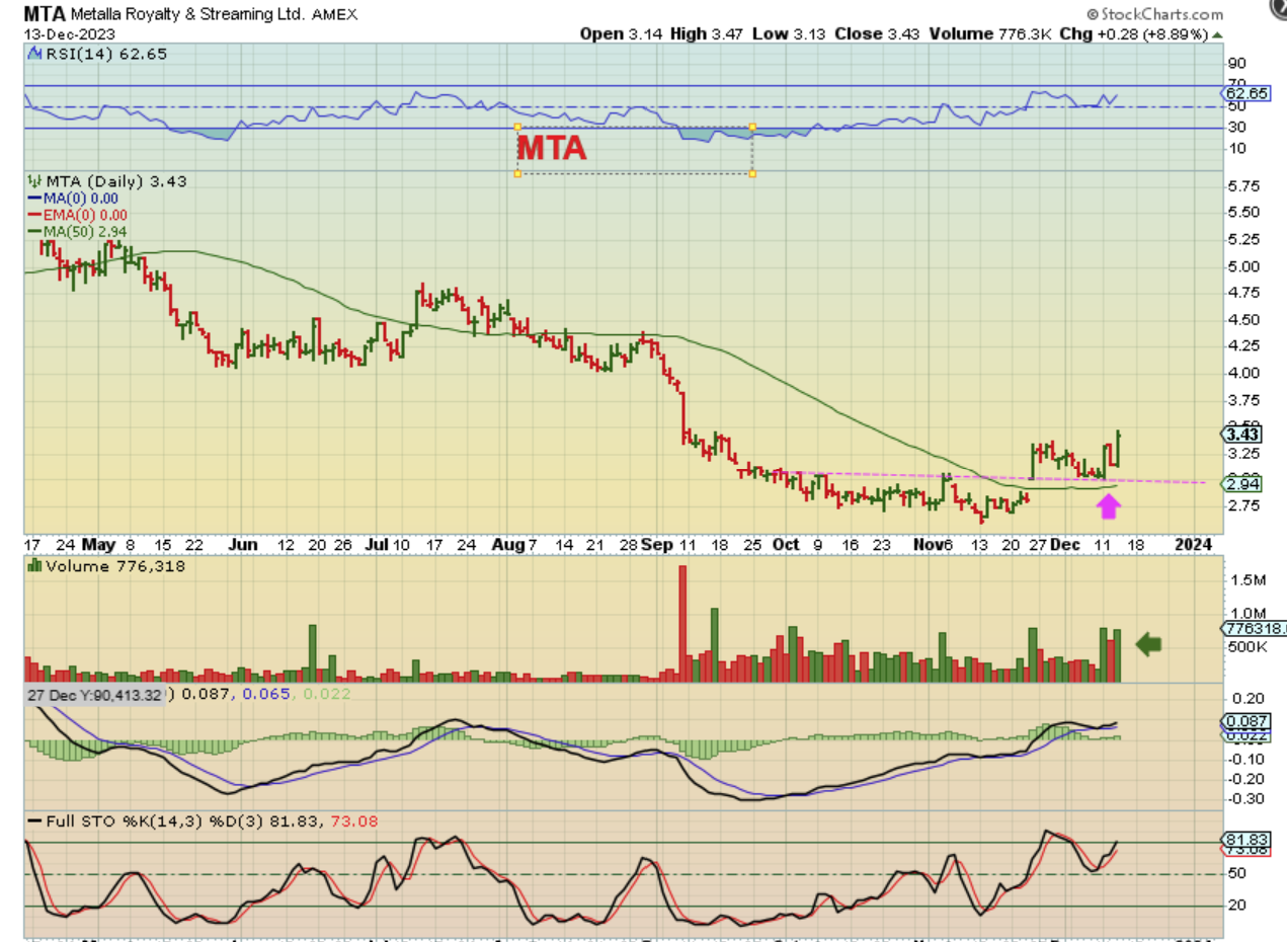 MTA is also a royalty and streaming company coming out of the lows. I love the way this based out, broke out and back tested too. This is a nice set up and a buy and hold too. SAND is also another one.