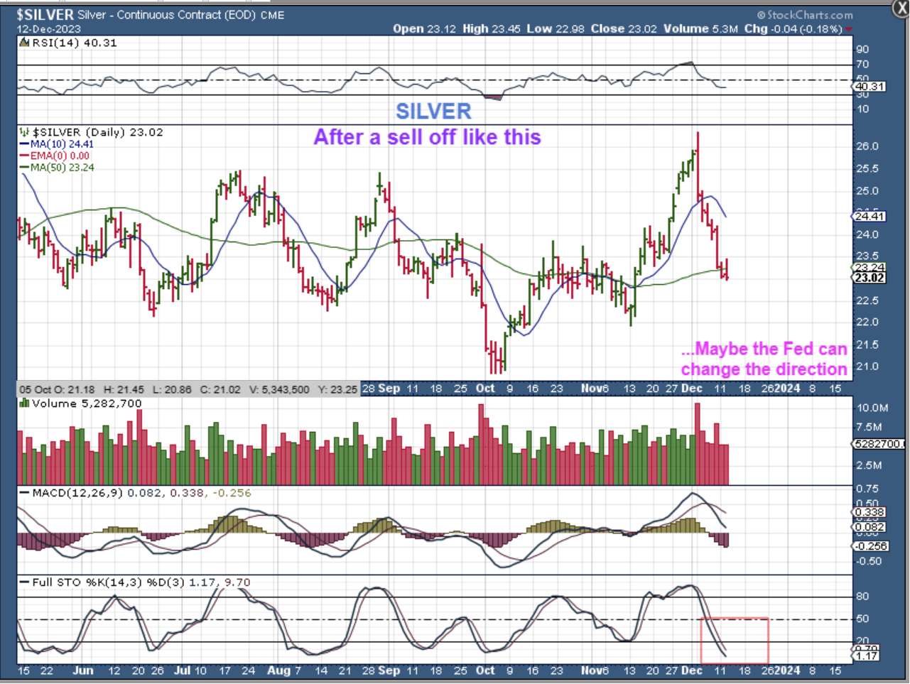 YESTERDAY I DISCUSSED THAT NON-STOP SELLING IN SILVER: I said that Silver has been selling off rather relentlessly, so maybe it CAN get a bounce? A relief rally after the Fed Decision? It is quite oversold, but these can stay oversold, so we’ll see.