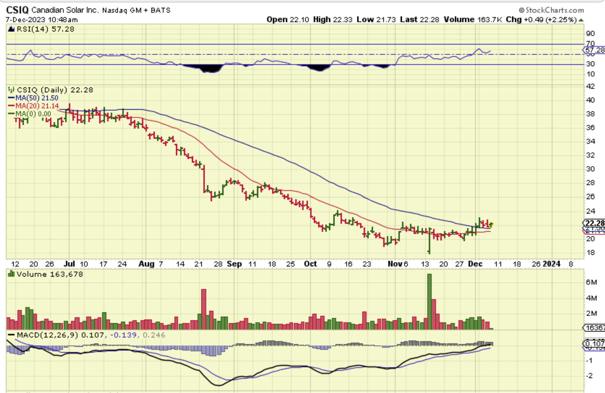 I just wanted to show this set up on a couple of the Solar Stocks again. Now that they both broke out above the 50sma and are crawling along it, it is low risk with a stop under the 50sma.