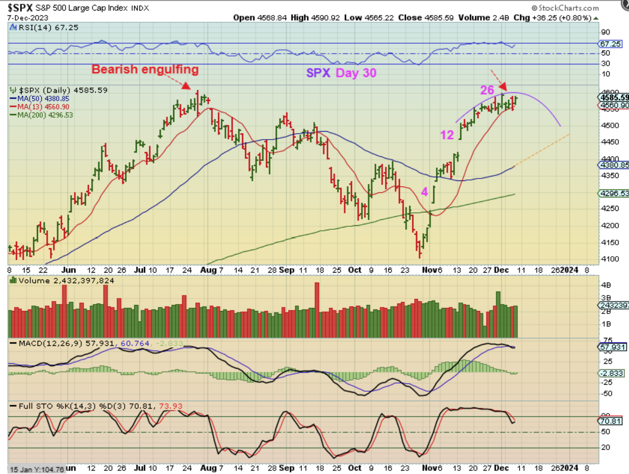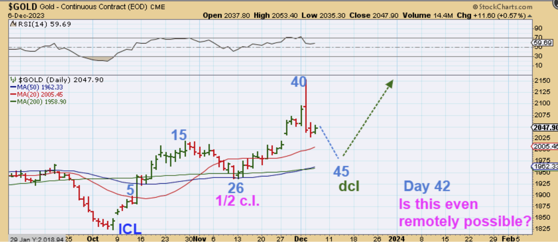 The SPX is on day 30 and this has been a very strong first daily cycle. We will look forward to buying that dip. I would say that DCLs can come at 35 days to 45 days, but we have seen 50 day cycles in 2023.
