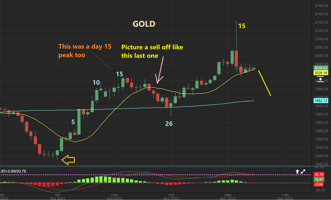 1. Gold peaked on day 15 and it peaked on day 15 now too.