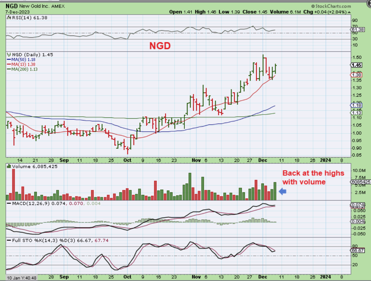 NGD ran to $1.52, pulled back to the 13sma, and started climbing again yesterday. It closed near the highs again, so I love what I am seeing there.