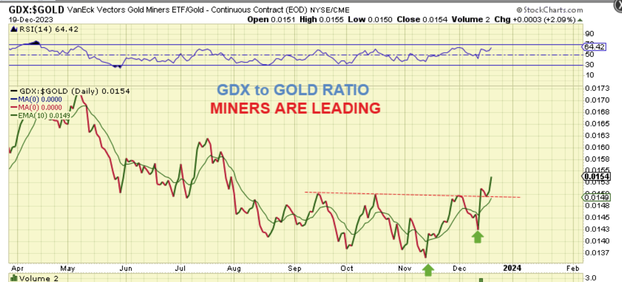 GDX to GOLD RATIO: The Miners are obviously leading the metals and that can be seen here with the Miners to Gold Ratio. This is always a good sign. Above I mentioned that Gold and Silver aren’t even close to their last daily cycle highs.