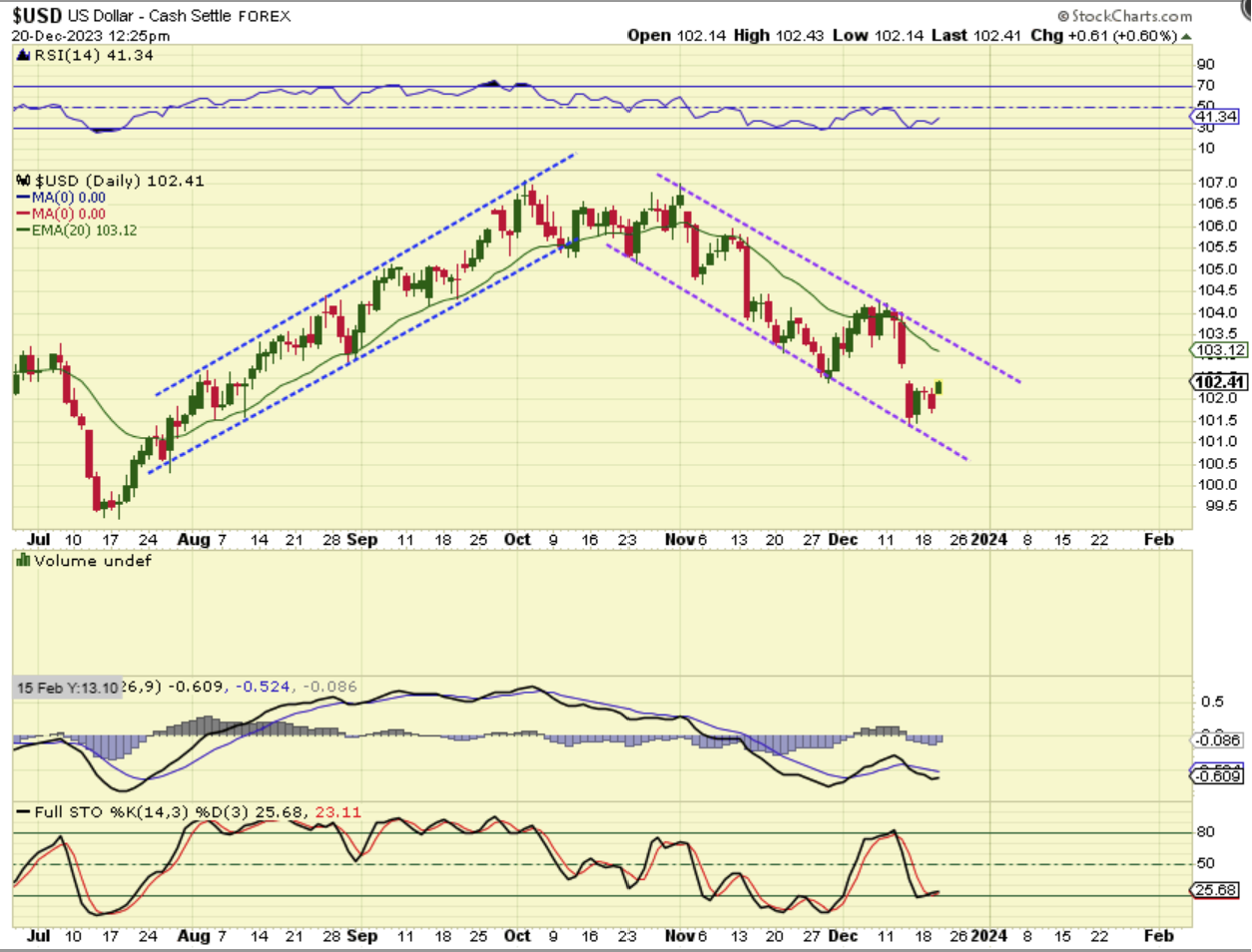 SPX – We are seeing a very strong year end rally. Just when you think that it can’t keep going, it does. This is extremely right translated and the dip into the next dcl is definitely a buy. I just hope that we don’t spend all of January chopping sideways to consolidate these gains.