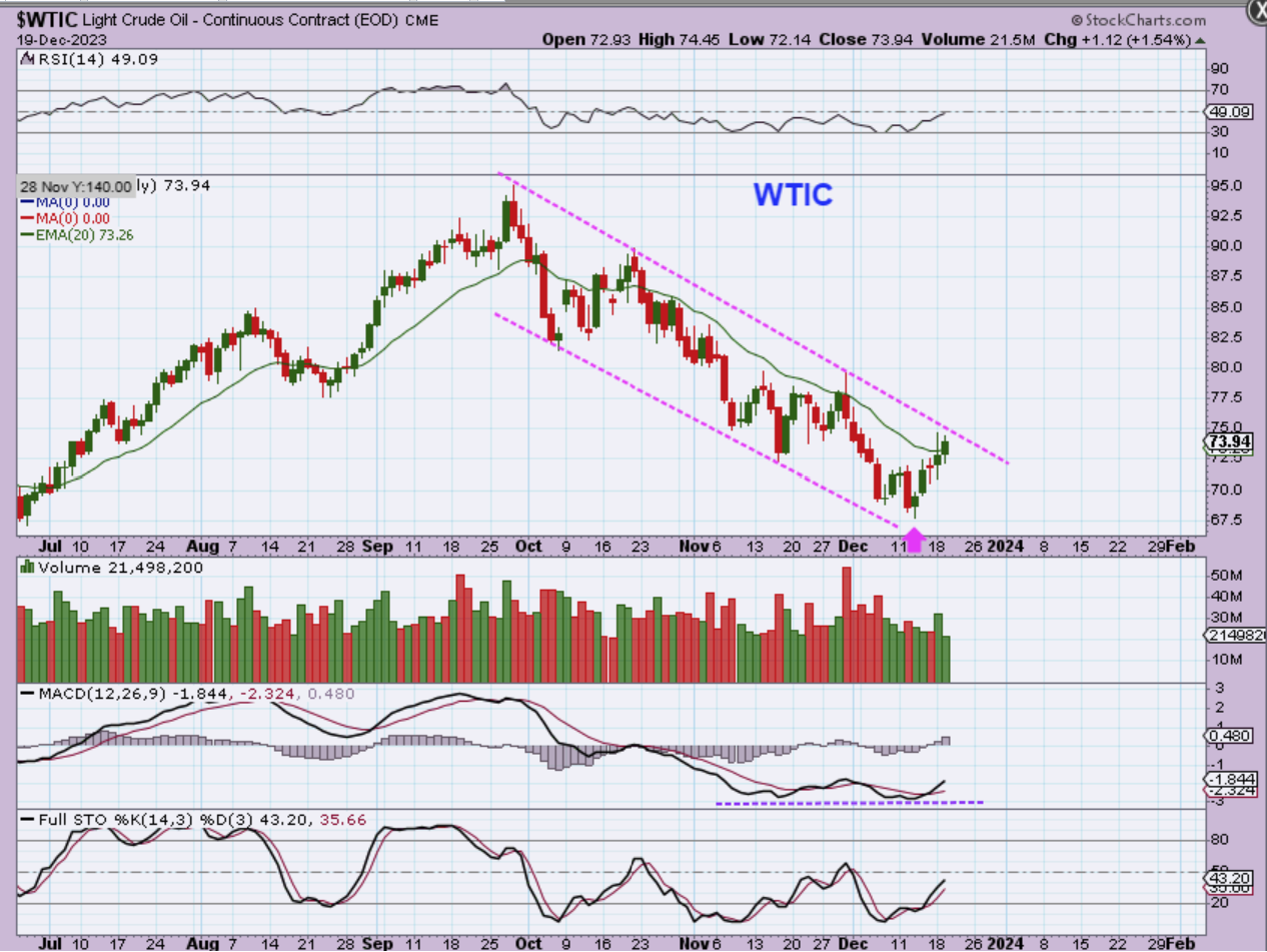 SILVER surged on Fed Wednesday and has paused. It has a series of higher lows, is on day 3 of a new daily cycle, and so far remains bullish. It remains oversold, so we’ll see how this plays out over time.