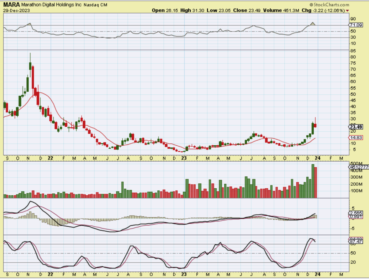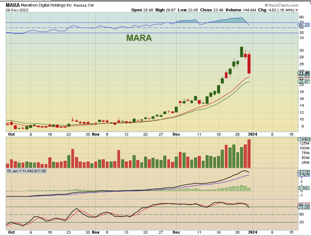 MARA DEC 27th – I wrote this example of how a pullback could develop using The Mara Chart (This was as of Wednesday trading; it has since dropped)…