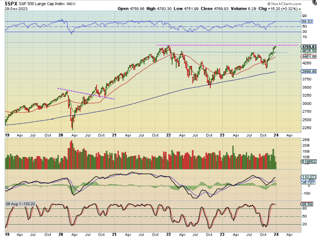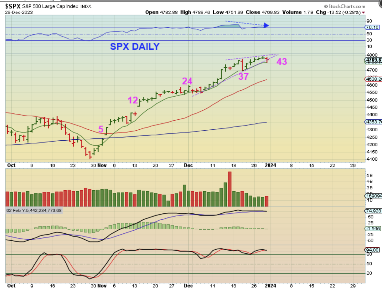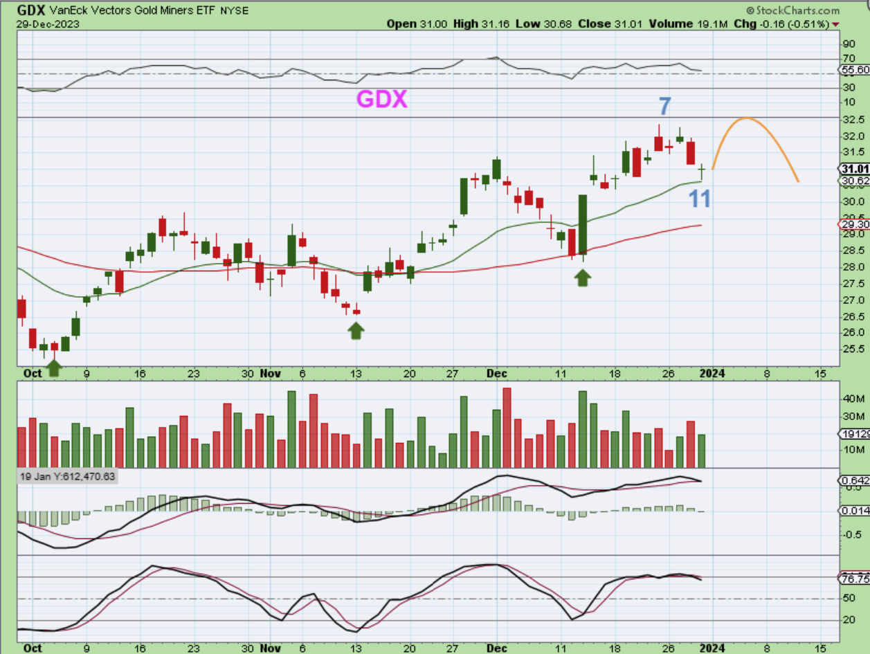 The 2024 does still look to be bullish in many ways, but we always need to expect normal pull backs and dips, especially when we factor in Cycles and cycle counts. The way things are set up, it looks like The General Markets, Gold, Silver, and The Miners, The Crypto area and maybe Oil (if it can break free from this constant choppy sideways action) could remain bullish going forward. I want to say thanks to everyone for being with me in 2023, I very much appreciate you all, and I am wishing you all a happy, healthy, profitable 2024! Enjoy the rest of your time off and we’ll see you on Tuesday morning for some 2024 trading – Thank You Chartfreaks!