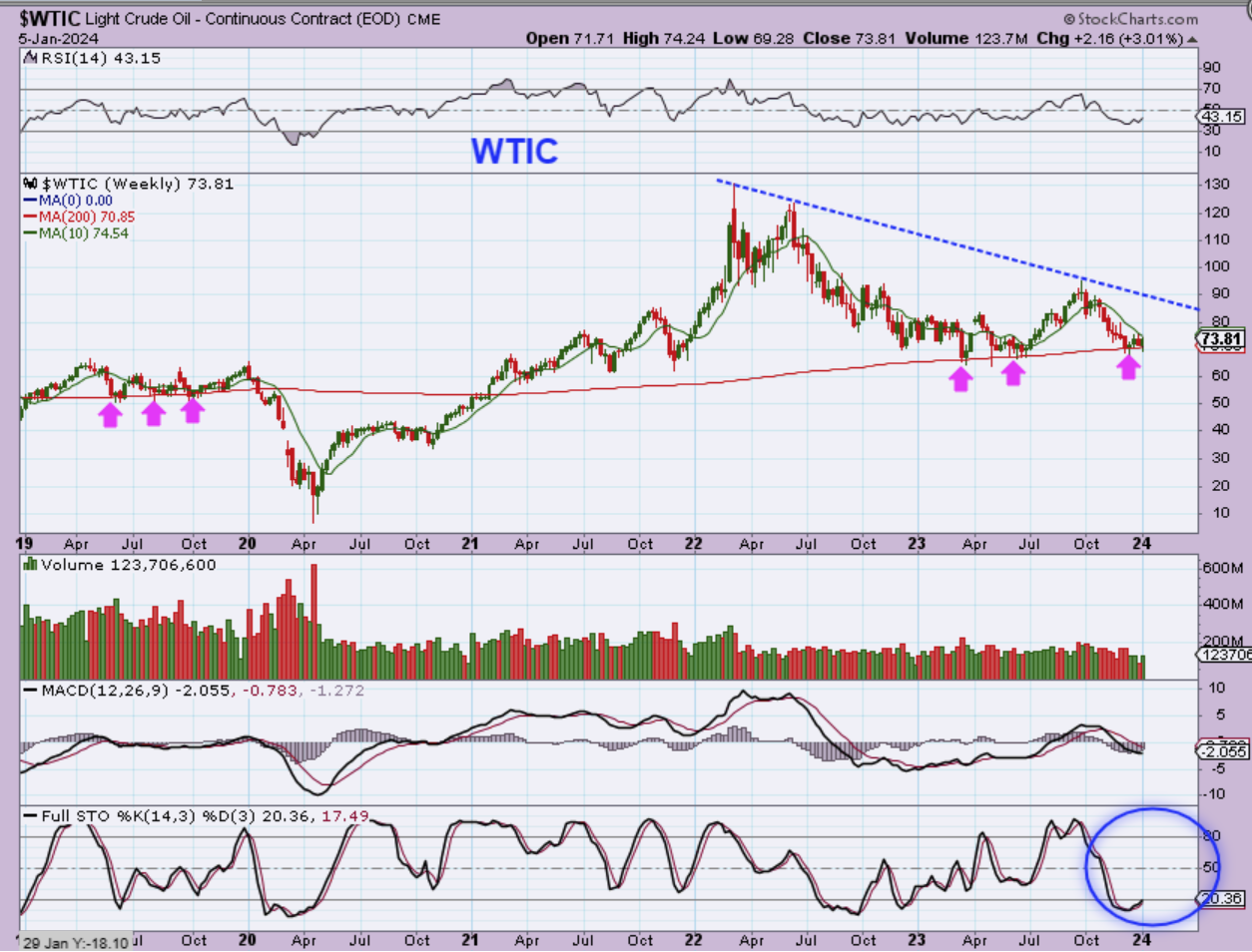 WTIC WEEKLY – Oil is trying to bottom here, but it does remain choppy. Oil is oversold on a weekly basis too, so it really should be able to bounce.