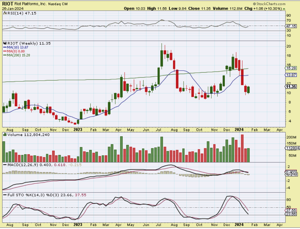Both MARA and RIOT were up 10% for the week. I expected an a-b-c drop to get this oversold, but that may not happen if Bitcoin just bottomed. These stocks have been crushed, so use caution if you trade them, they can and will be volatile going forward.