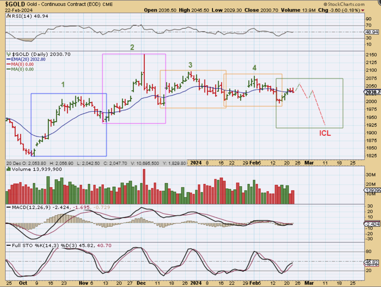 GOLD may finally be ready to drop into that ICL, and it is possible that we are in the 5th daily cycle.  Time will tell, but Golds strength has been making it very difficult to visually see weakness. Hopefully that changes briefly 🙂