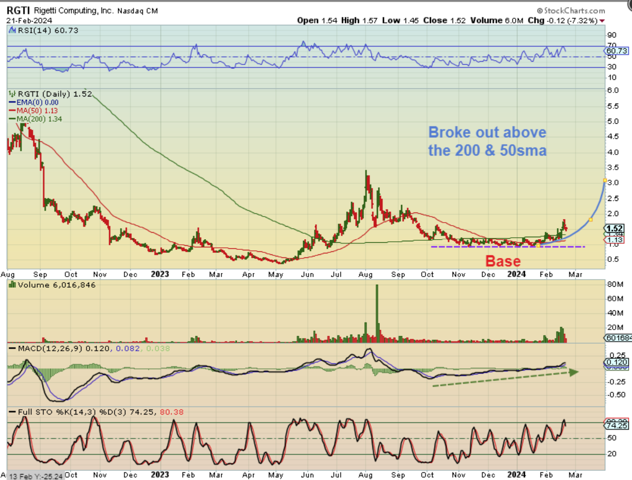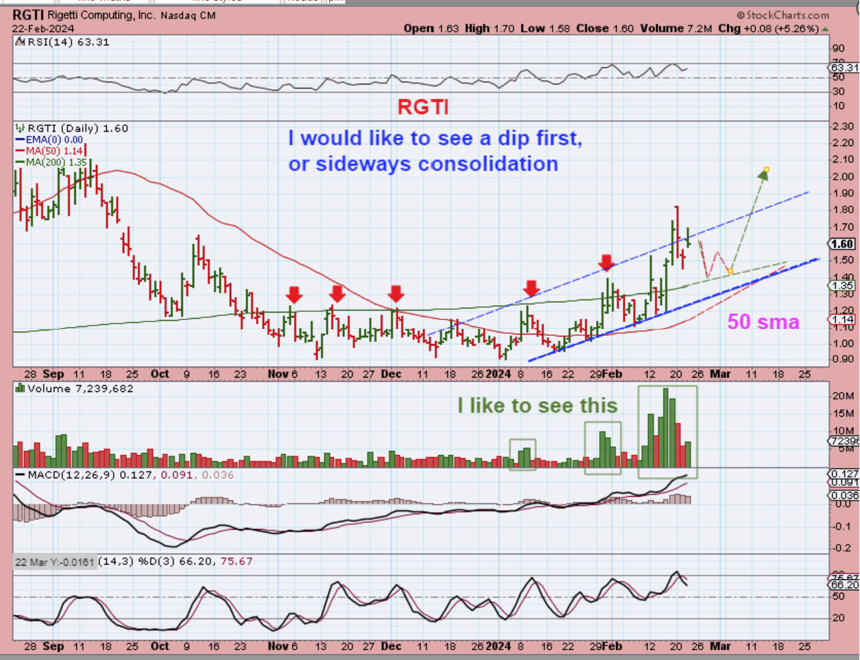 RGTI– My doctor knows that I invest and he asks me questions often, so Thursday he said to me, “Hey, what do you think about the quantum computing sector and RGTI?”, so I looked up the chart and I do really like it. I drew this up for him and emailed it to him yesterday, so this is a day old now (and it was up 5% Thursday).