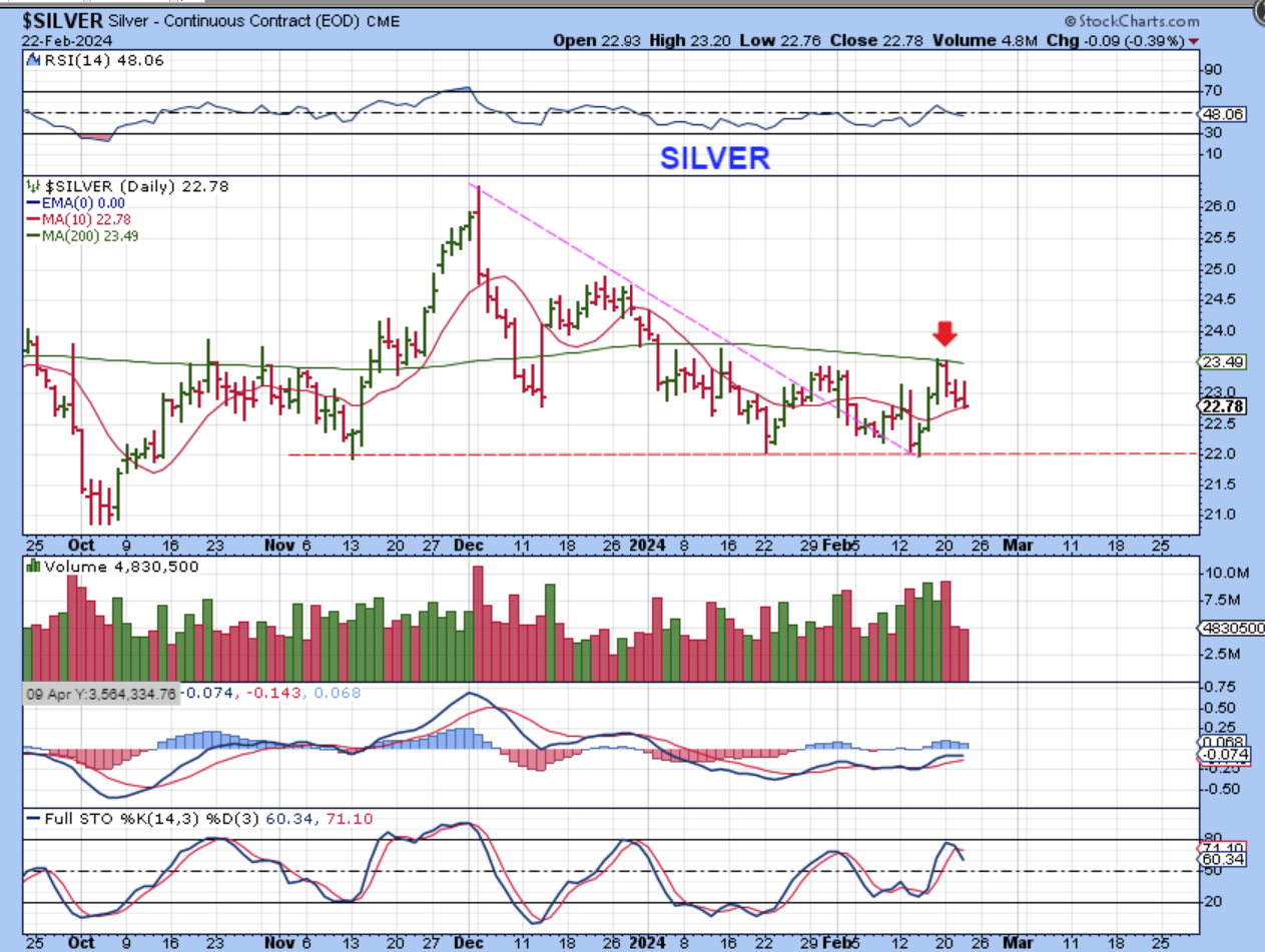 SILVER was rejected at the 200sma and it is chopping sideways for now.