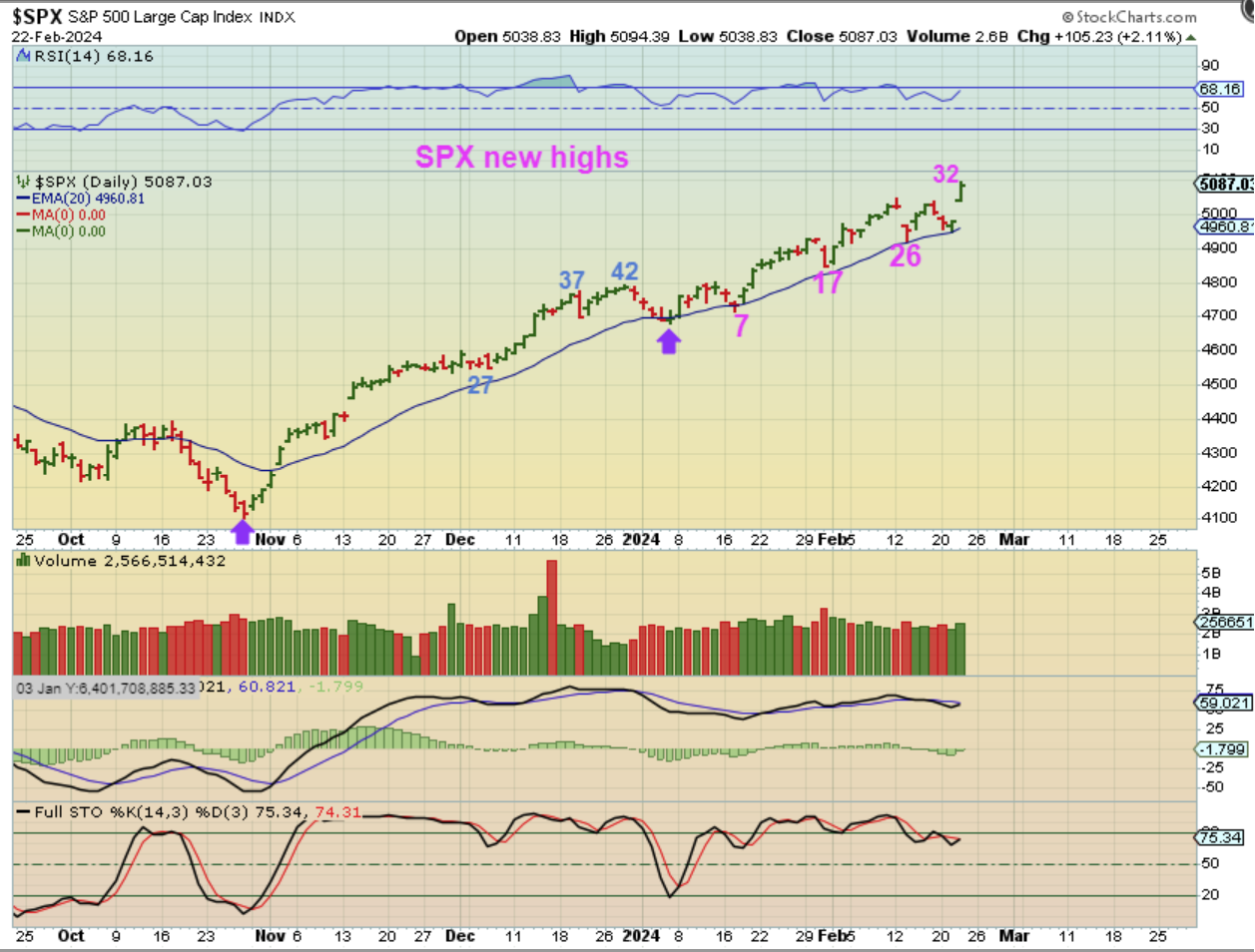 Take a look at the first daily cycle and where it was at day 27. It still rallied to day 43 from there and then dropped to a dcl later. We are currently on day 31, so this may be what unfolds here if the markets rally on Fed Minutes, NVDA, and the Jobs Report. This can go higher and still be in the 2nd daily cycle.