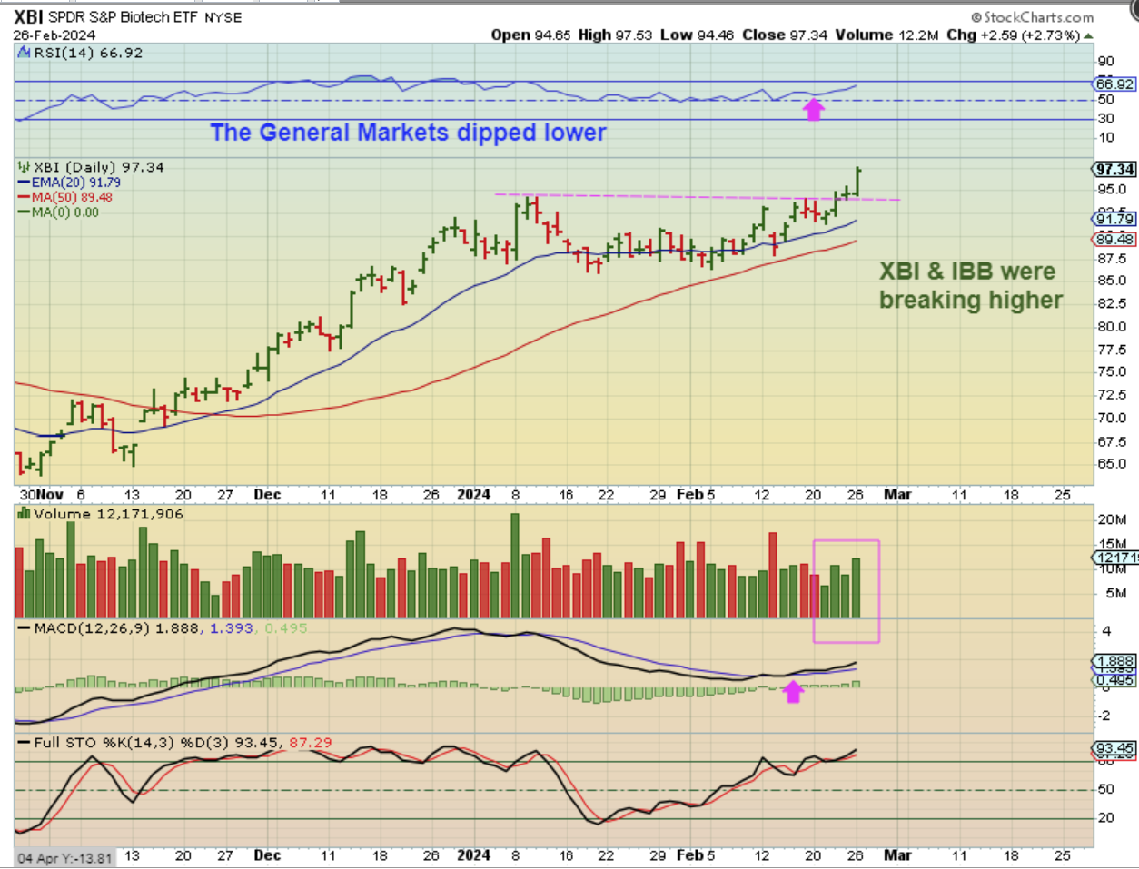 As the General Markets dipped on Monday, The XBI & IBB did break higher.