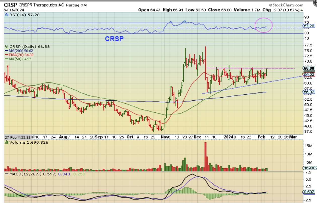 ‘CRSP’ closed up 3.67% at that Magenta line, and might be ready to breakout & run again.